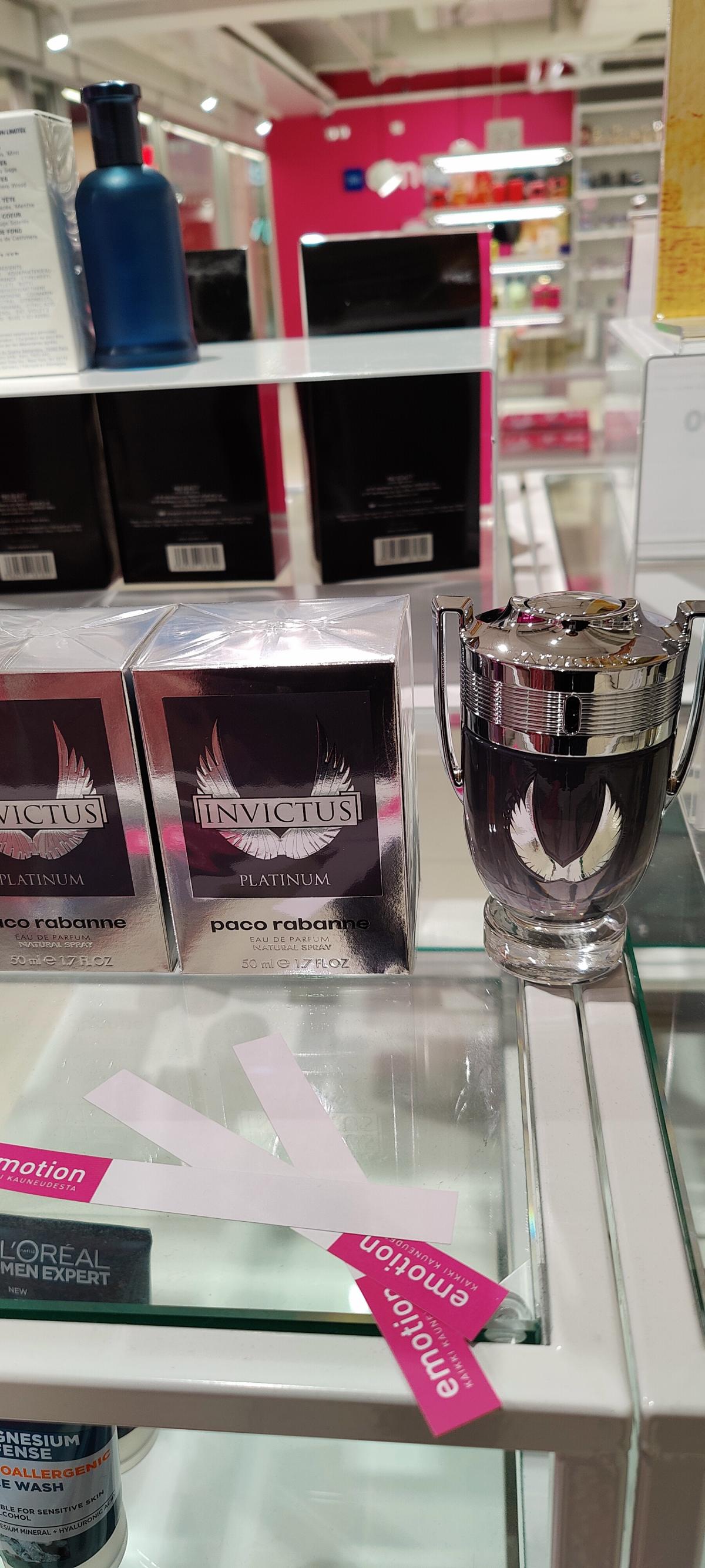 Vždycky jsem dávala přednost slané, žvýkavé syntetické ambře Invictus před One Million (kterou nesnáším), a i když mám několik flakónů z obou řad, ty Invictus mi v tomto případě byly velmi podobné. Jestliže se s "Victory" odpoutali od DNA linie, s "Platinum" ji vylepšili, přidali vyzrálejší tóny, ale i tak se nenechte zmást humbukem, "Platinum" je Invictus pro ty, kteří si v mládí flaštičky vycvakávali v barech a na diskotékách a teď už mají "zodpovědnější" život.