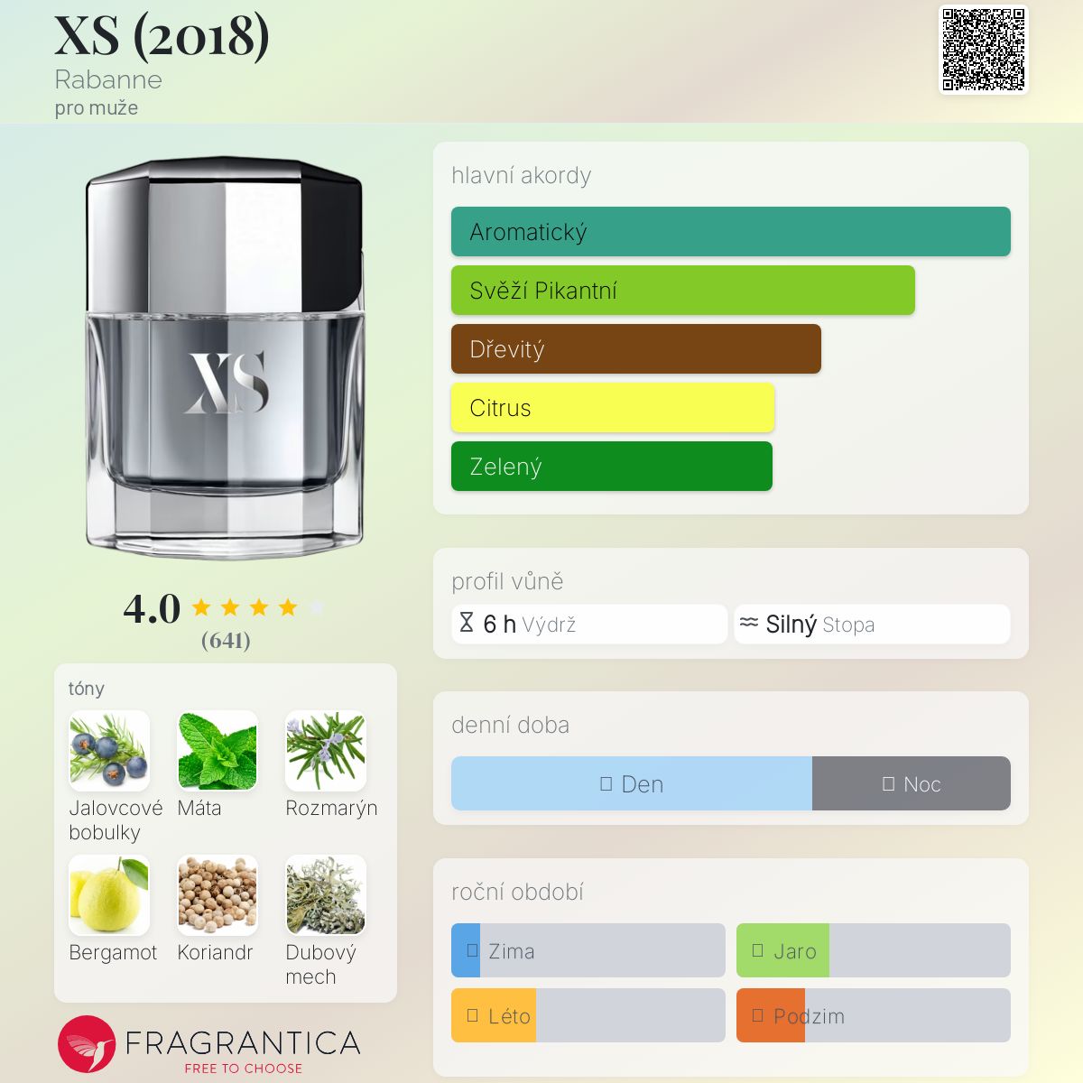 XS (2018) podle Rabanne je Woody Aromatic vůně pro muže. XS (2018) byl/a uveden/a v roce 2018. XS (2018) byl/a vytvořen/a Rosendo Mateu a Gerard Anthony. Vrchní tóny jsou Máta, Bergamot a Citrón; střední tóny jsouJalovcové bobulky, Koriandr a Pelargónie ; základní tóny jsou Rozmarýn, Dubový mech a Santalové dřevo.