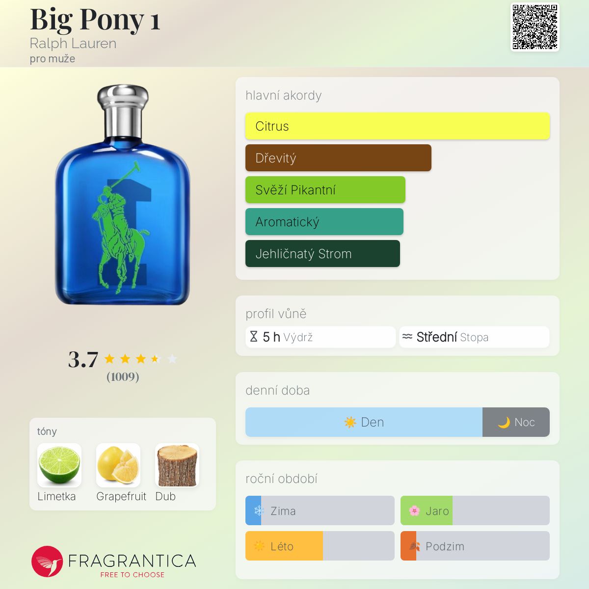 Big Pony 1 podle Ralph Lauren je Woody Aromatic vůně pro muže. Big Pony 1 byl/a uveden/a v roce 2010. "Nosem" za touto vůní je Yves Cassar.