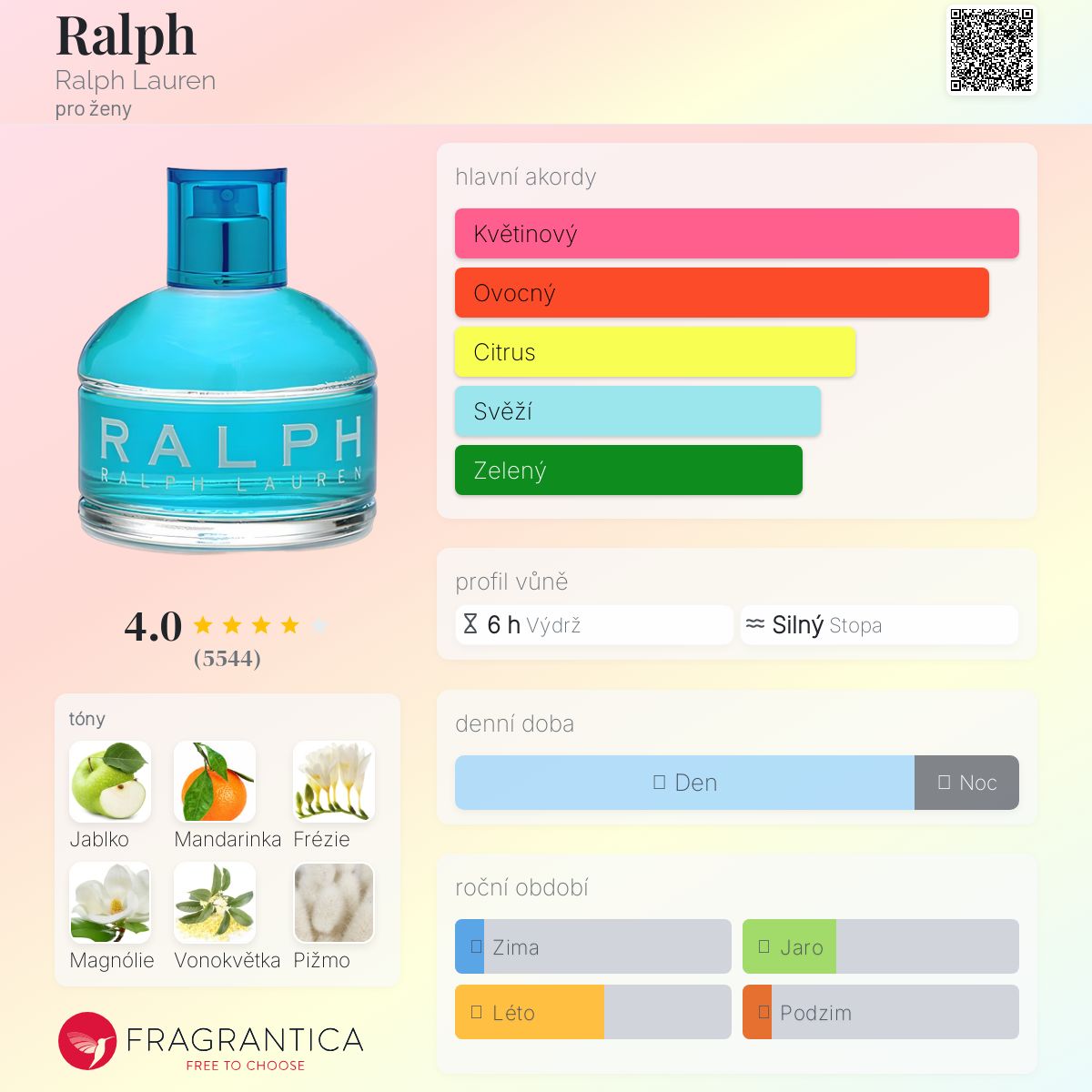 Ralph podle Ralph Lauren je Floral Fruity vůně pro ženy. Ralph byl/a uveden/a v roce 2000. "Nosem" za touto vůní je Alain Alchenberger. Vrchní tóny jsou List jablka, Italská mandarinka a Japonská vonokvětka; střední tóny jsouŽlutá frézie, Magnólie a Boronia ; základní tóny jsou Pižmo a Bílý kosatec.
