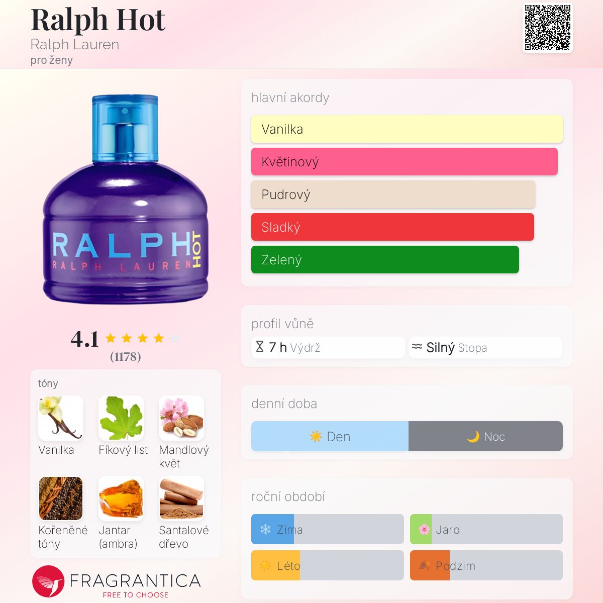 Ralph Hot podle Ralph Lauren je Orientální Vanilla vůně pro ženy. Ralph Hot byl/a uveden/a v roce 2006. "Nosem" za touto vůní je Pierre Negrin.