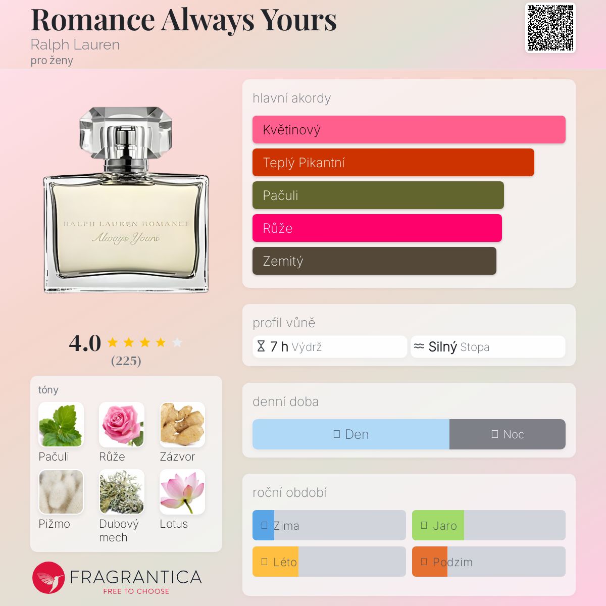 Romance Always Yours podle Ralph Lauren je Chypre Floral vůně pro ženy. Romance Always Yours byl/a uveden/a v roce 2008.