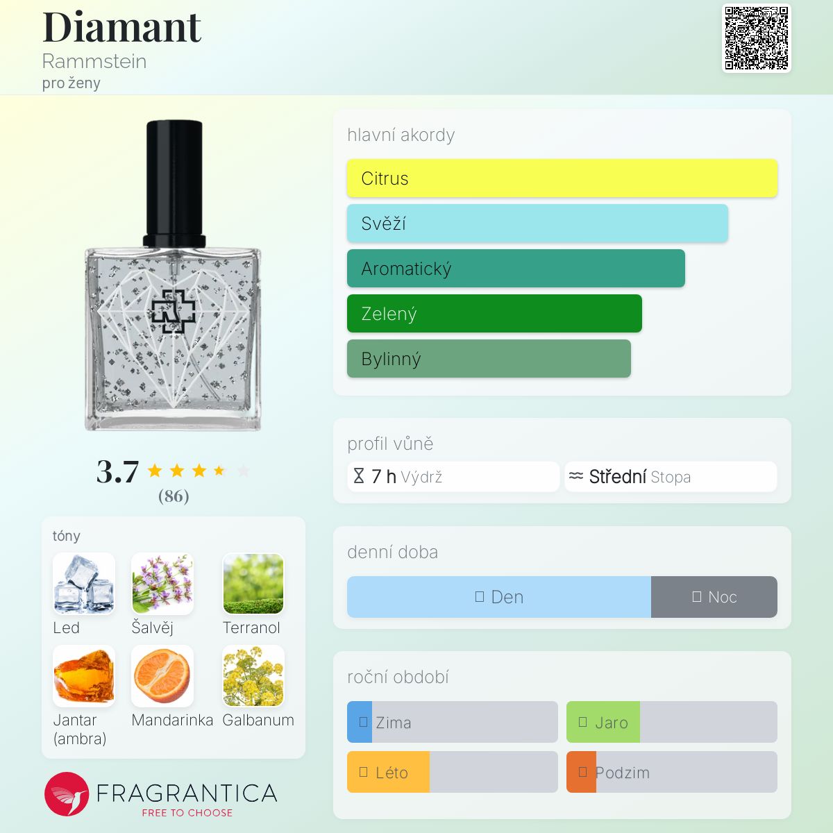 Diamant podle Rammstein je vůně pro ženy. Diamant byl/a uveden/a v roce 2021. "Nosem" za touto vůní je Alexandre Illan. Vrchní tóny jsou Led, Šalvěj, Galbanum a Zázvor; střední tóny jsouMandarinka, Grapefruit a Yuzu ; základní tóny jsou Terranol, Křišťálový jantar a Bílé dřevo.
