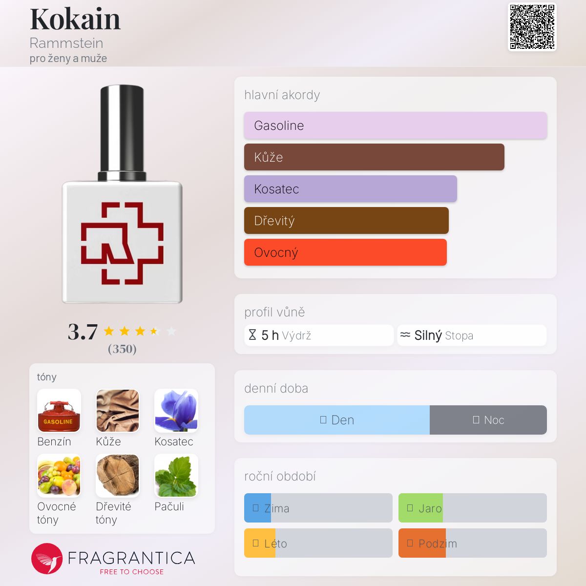 Kokain podle Rammstein je Leather vůně pro ženy a muže. Kokain byl/a uveden/a v roce 2019. "Nosem" za touto vůní je Alexandre Illan.