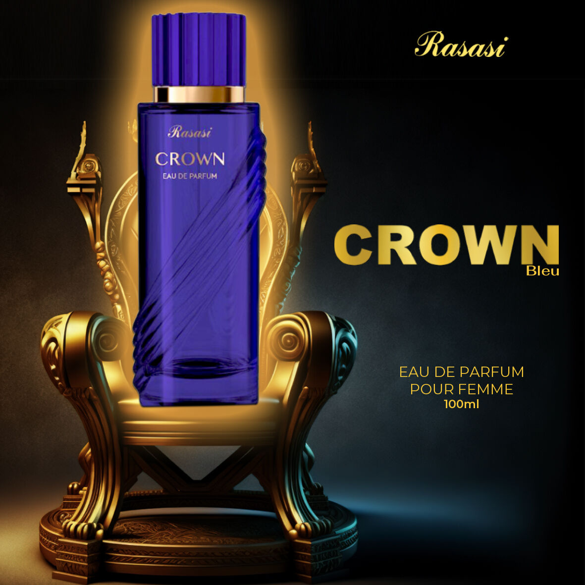 Crown Bleu podle Rasasi je Floral Woody Musk vůně pro ženy. Crown Bleu byl/a uveden/a v roce 2023. Vrchní tóny jsou Růžový pepř, Aldehydy a Šafrán; střední tóny jsouPelargónie, Růže a Pižmo ; základní tóny jsou Bílý jantar (ambra), Bílé pižmo, Labdanum, Kůže, Cedr a Orris.