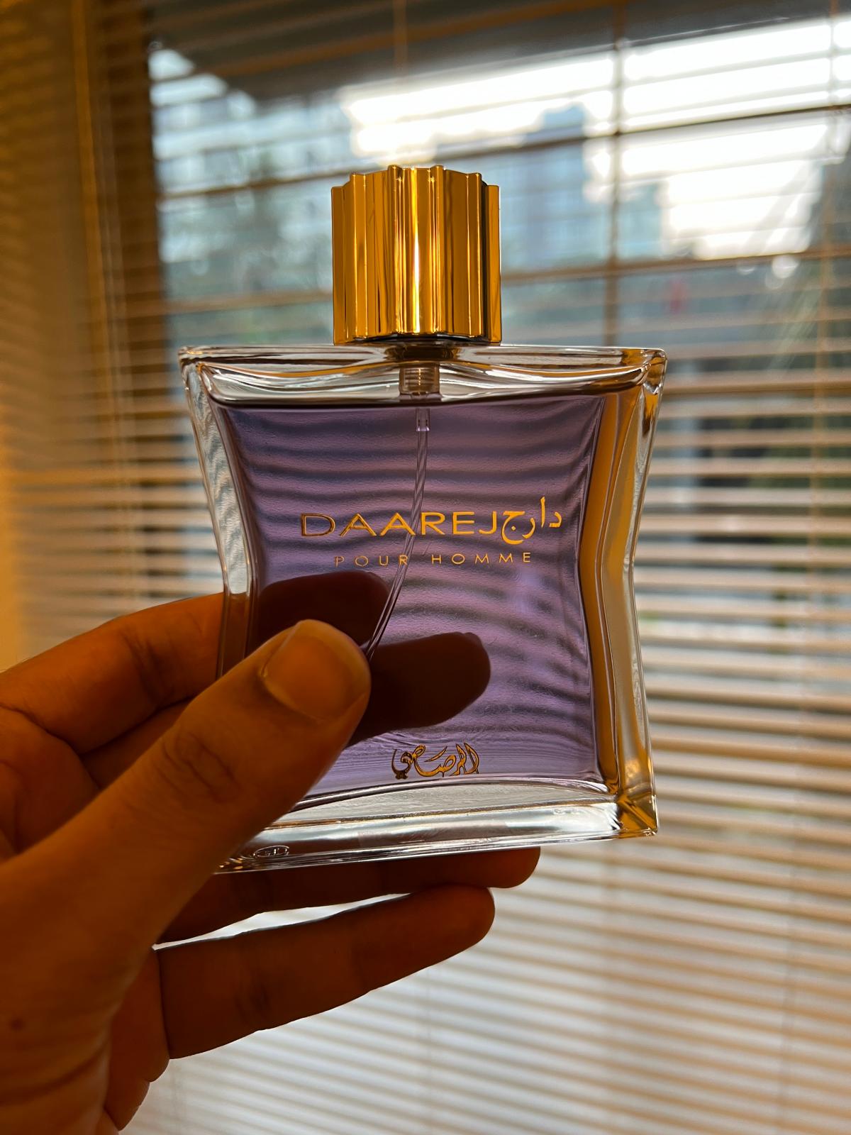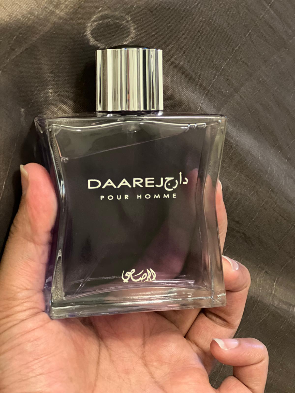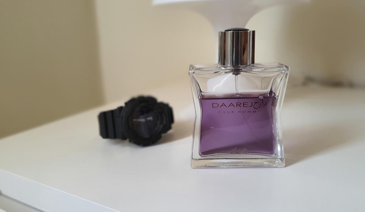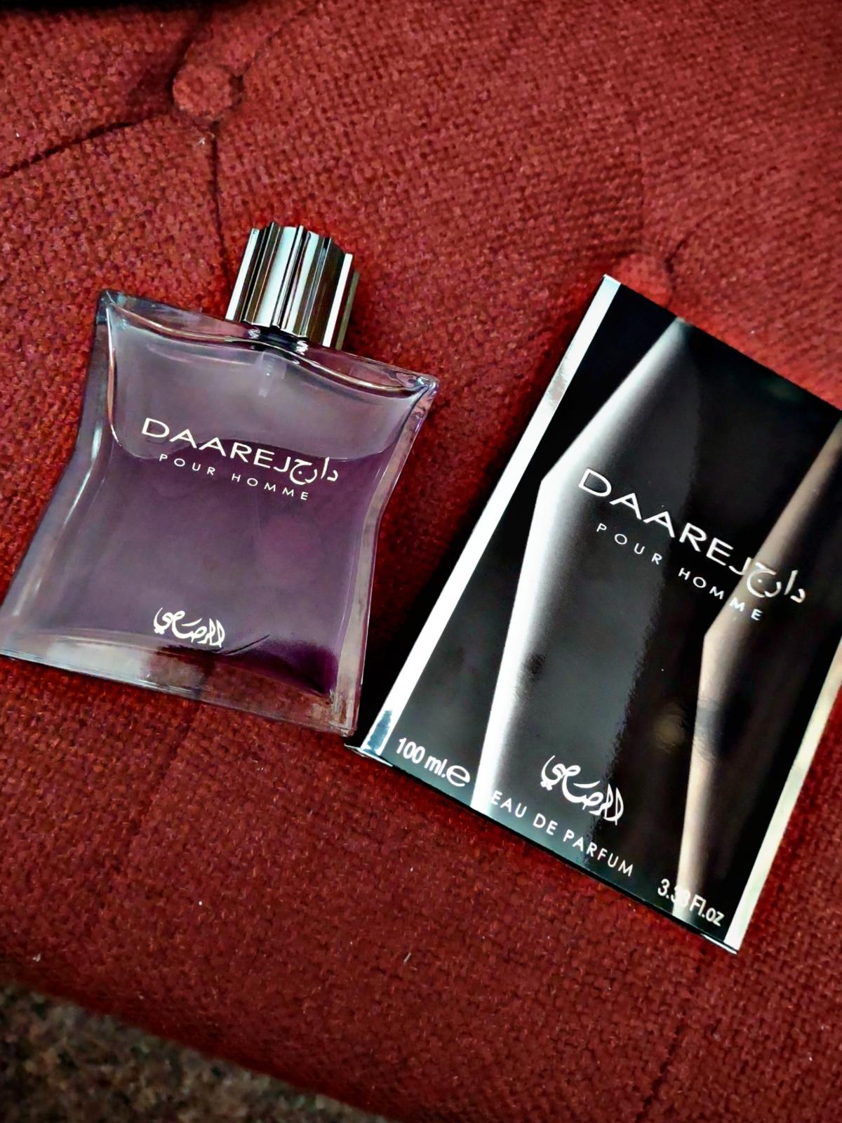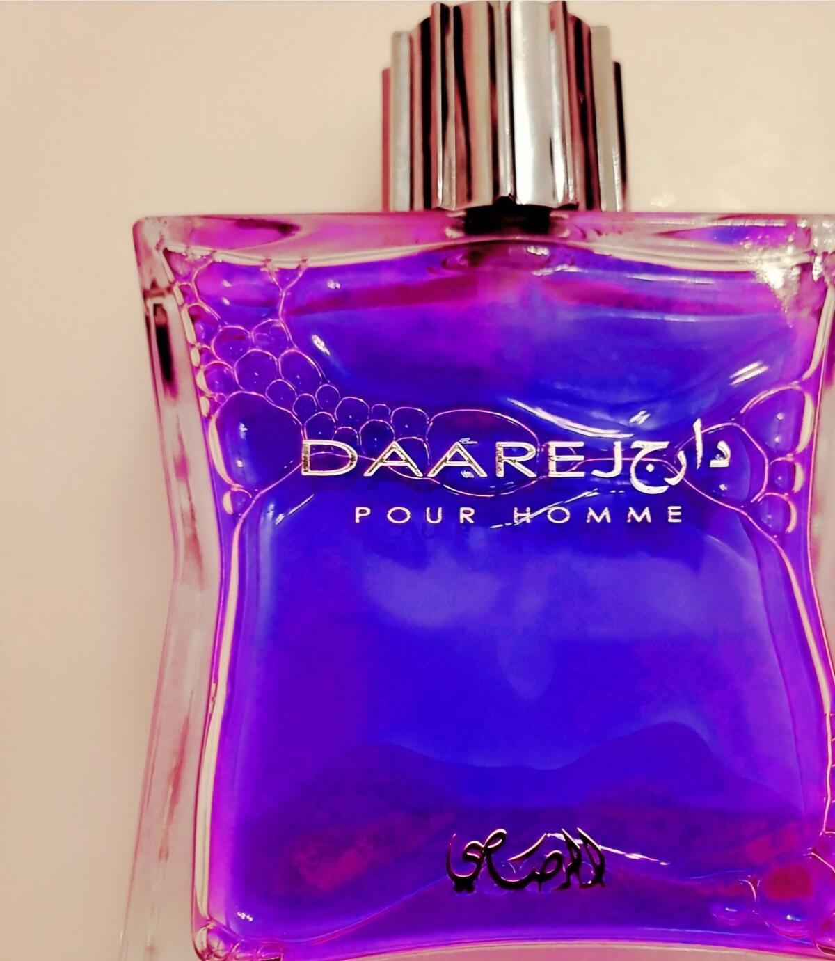 Daarej pour Homme podle Rasasi je Orientální Spicy vůně pro muže. Vrchní tóny jsou Kmín, Kardamom a Pelyněk; střední tóny jsouRůže a Kořen orris ; základní tóny jsou Vanilka, Fazole tonka, Jantar (ambra), Santalové dřevo, Pačuli a Pižmo.