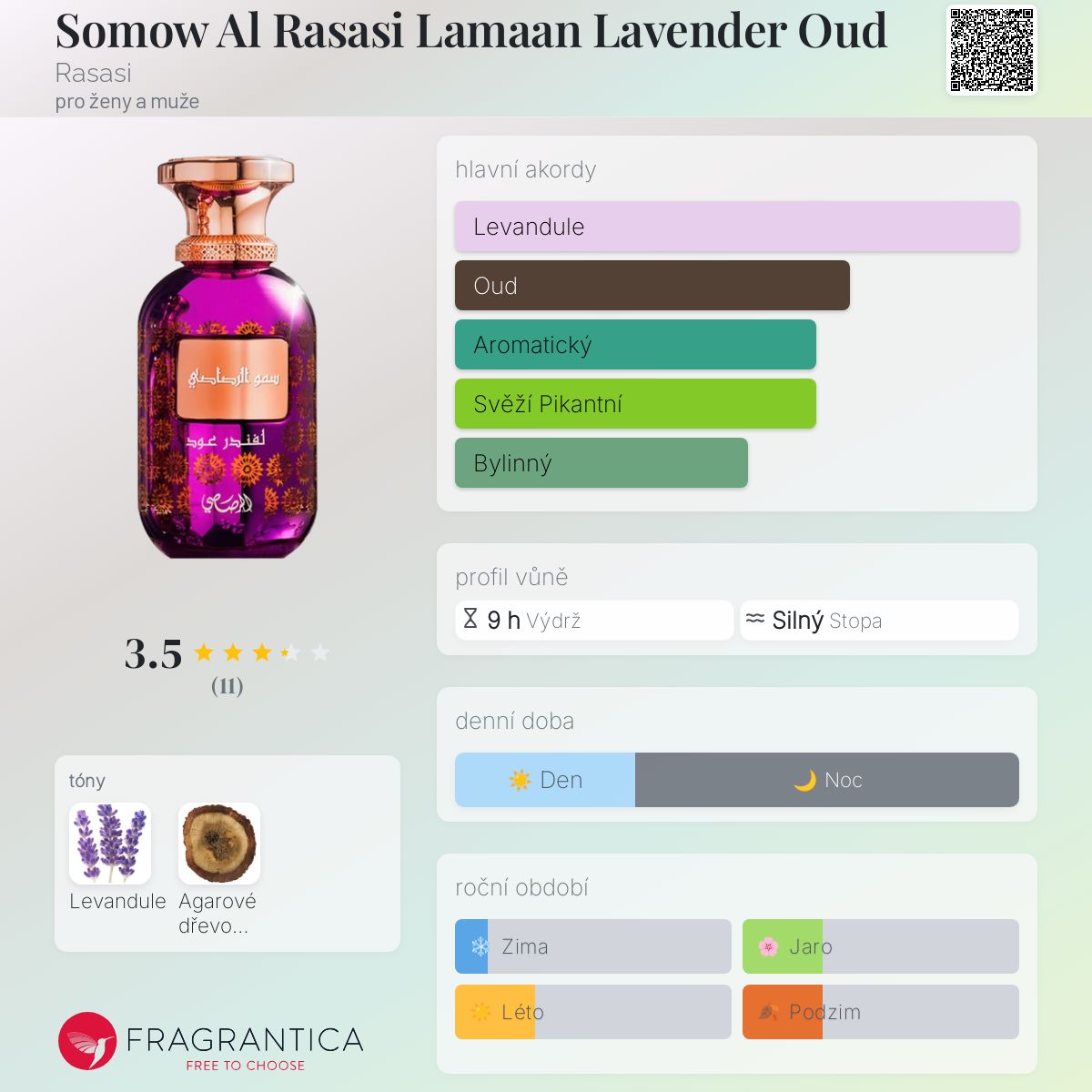 Somow Al Rasasi Lamaan Lavender Oud podle Rasasi je vůně pro ženy a muže. Somow Al Rasasi Lamaan Lavender Oud byl/a uveden/a v roce 2022.