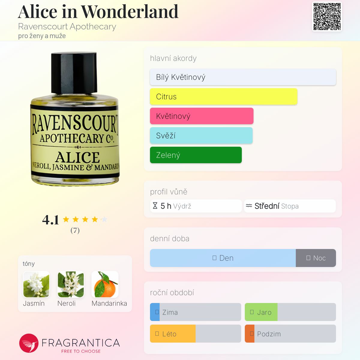 Alice in Wonderland podle Ravenscourt Apothecary je Citrus vůně pro ženy a muže. Alice in Wonderland byl/a uveden/a v roce 2013. "Nosem" za touto vůní je Tanya Kuznetsova.