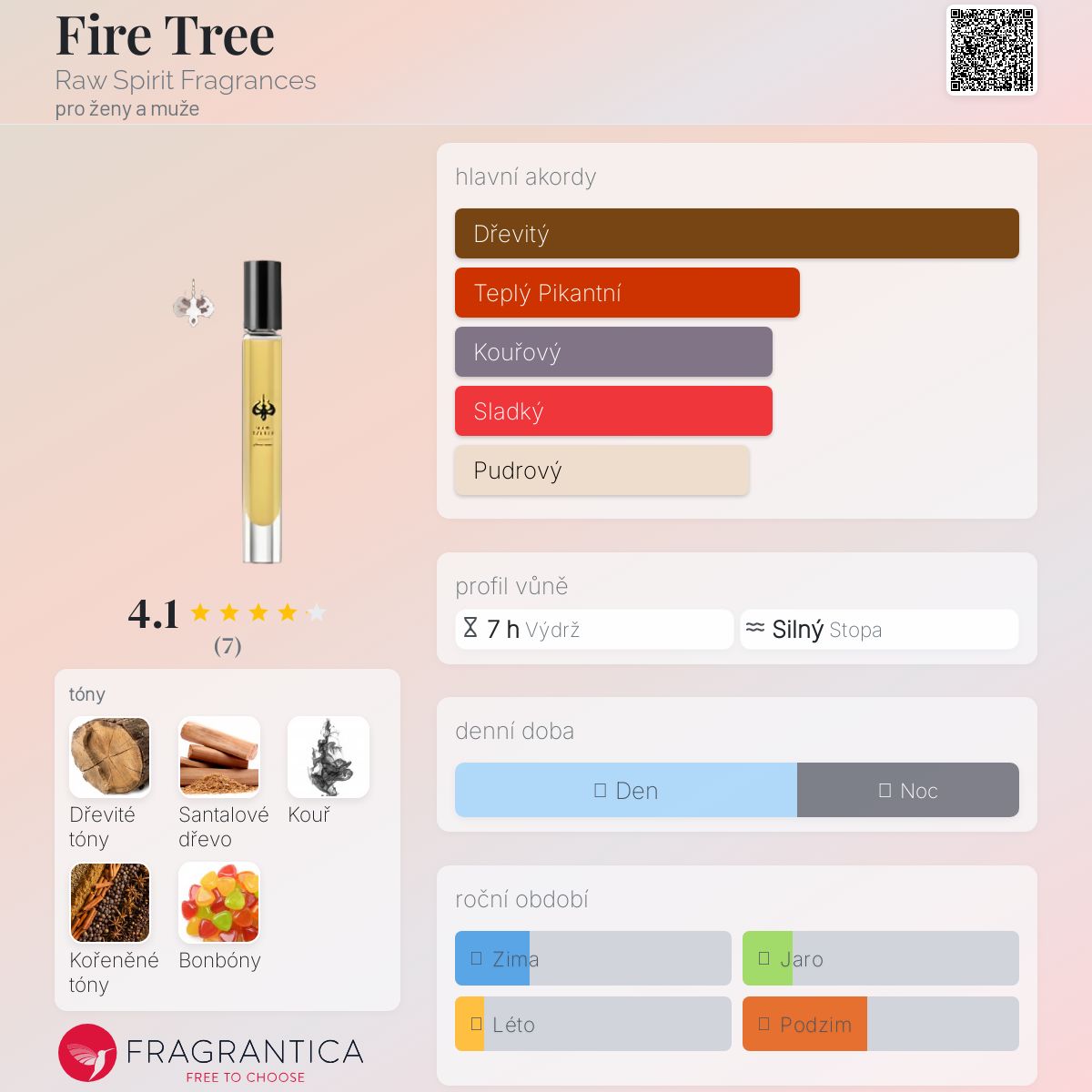 Fire Tree podle Raw Spirit Fragrances je Floral Woody Musk vůně pro ženy a muže. Fire Tree byl/a uveden/a v roce 2012.