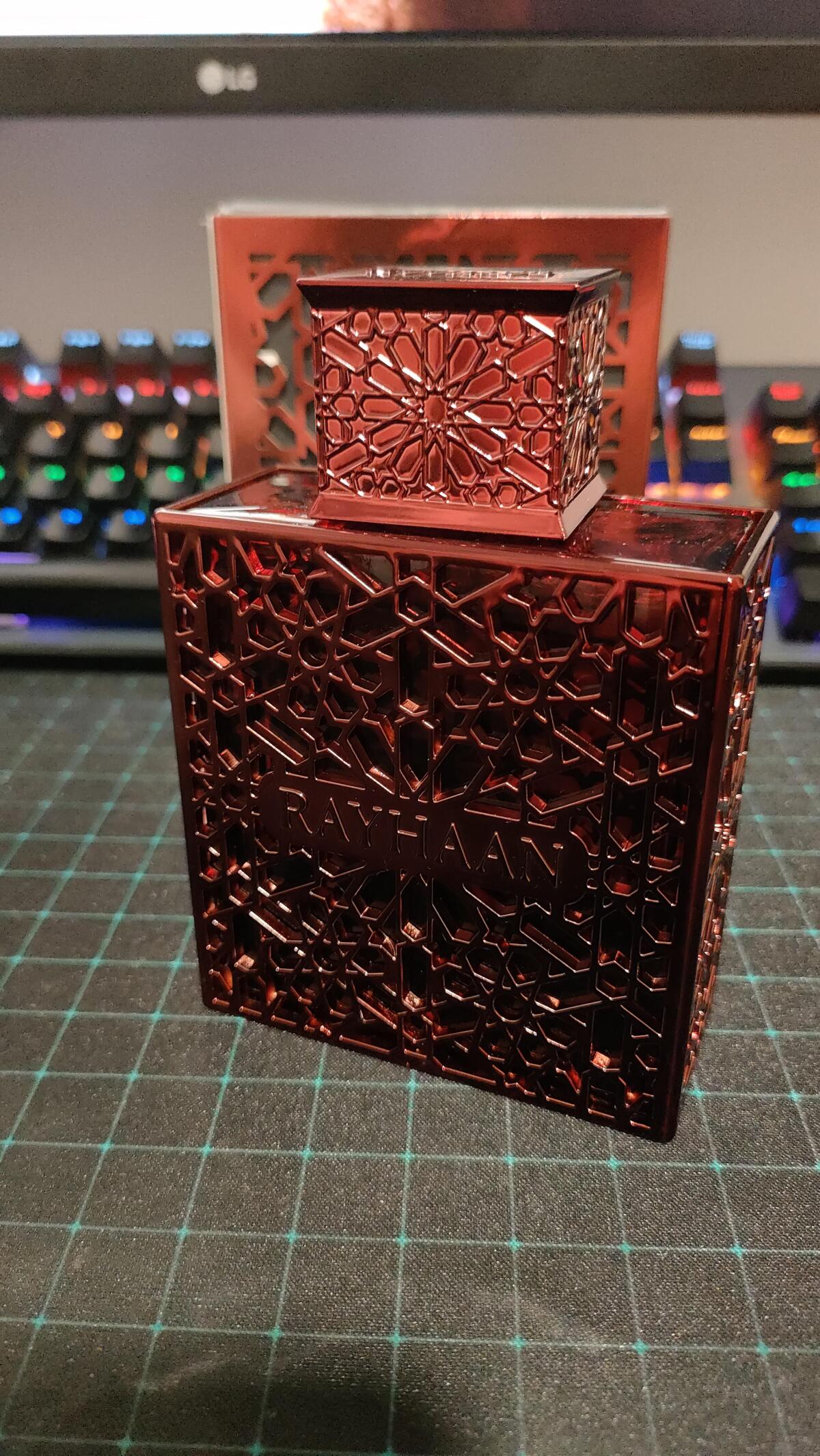 Crimson podle Rayhaan je vůně pro muže. Vrchní tóny jsou Skořice, Růžový pepř a Kardamom; střední tón jePačuli ; základní tóny jsou Fazole tonka, Vanilka a Benzoin.