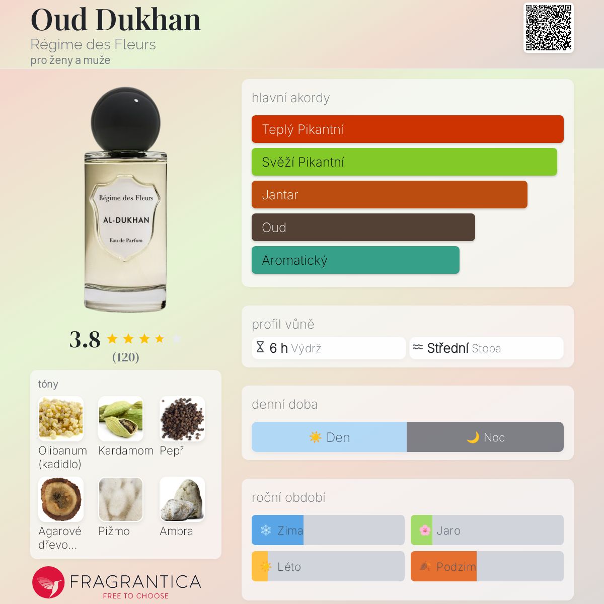 Oud Dukhan podle Régime des Fleurs je Orientální Woody vůně pro ženy a muže. Oud Dukhan byl/a uveden/a v roce 2021. "Nosem" za touto vůní je Dominique Ropion.