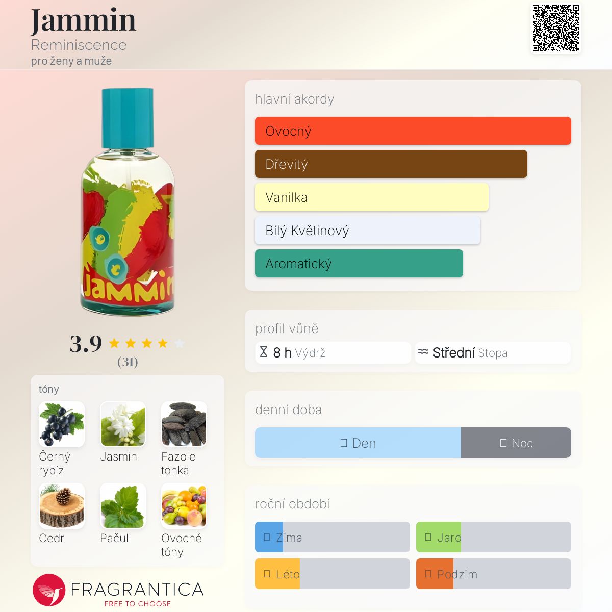 Jammin podle Reminiscence je vůně pro ženy a muže. Jammin byl/a uveden/a v roce 2006. "Nosem" za touto vůní je Maurice Roucel.