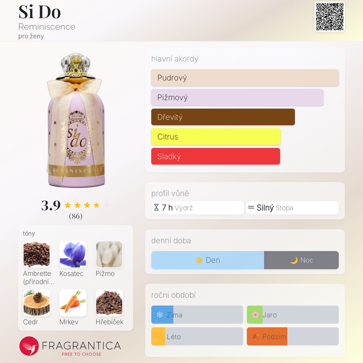 Si Do podle Reminiscence je Orientální Vanilla vůně pro ženy. Si Do byl/a uveden/a v roce 2008. Si Do byl/a vytvořen/a Zoe Coste a Jacques Flori. Vrchní tóny jsou Sicilský bergamot, Pomeranč a Italský citrón; střední tóny jsouAmbrette (přírodní pižmo), Kosatec, Atlasový cedr, Mrkev, Hřebíček a Ylang-Ylang ; základní tóny jsou Pižmo, Hruška, Vanilka a Broskev.