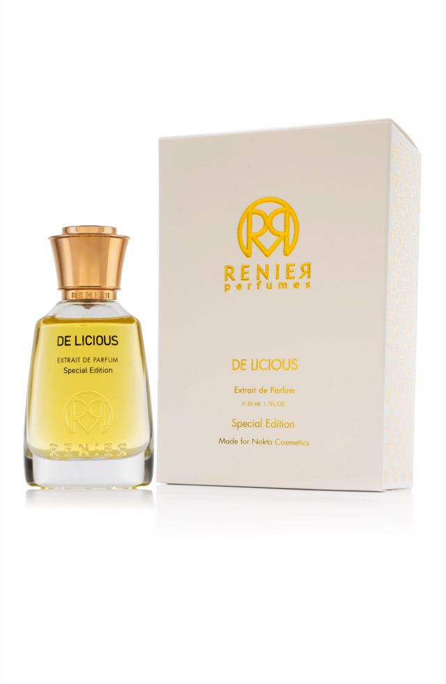 De Licious podle Renier Perfumes je Orientální Woody vůně pro ženy a muže. De Licious byl/a uveden/a v roce 2021. "Nosem" za touto vůní je Christian Carbonnel. Vrchní tóny jsou Hořká čokoláda, Pomeranč, Anýz, Labdanum a Yuzu; střední tóny jsouKastoreum, Cibetka, Med, Pačuli a Sušené ovoce ; základní tóny jsou Dřevité tóny, Jantar (ambra), Pižmo a Santalové dřevo.