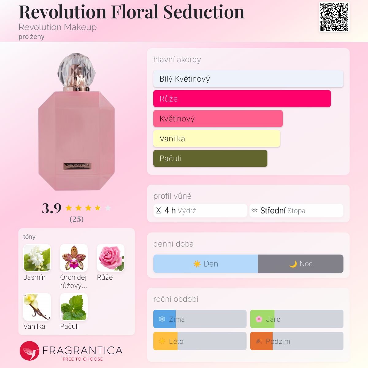 Revolution Floral Seduction podle Revolution Makeup je Orientální Floral vůně pro ženy. Revolution Floral Seduction byl/a uveden/a v roce 2023. Vrchní tóny jsou Jasmín a Růže; střední tón jeOrchidej růžový leopard ; základní tóny jsou Vanilka a Pačuli.