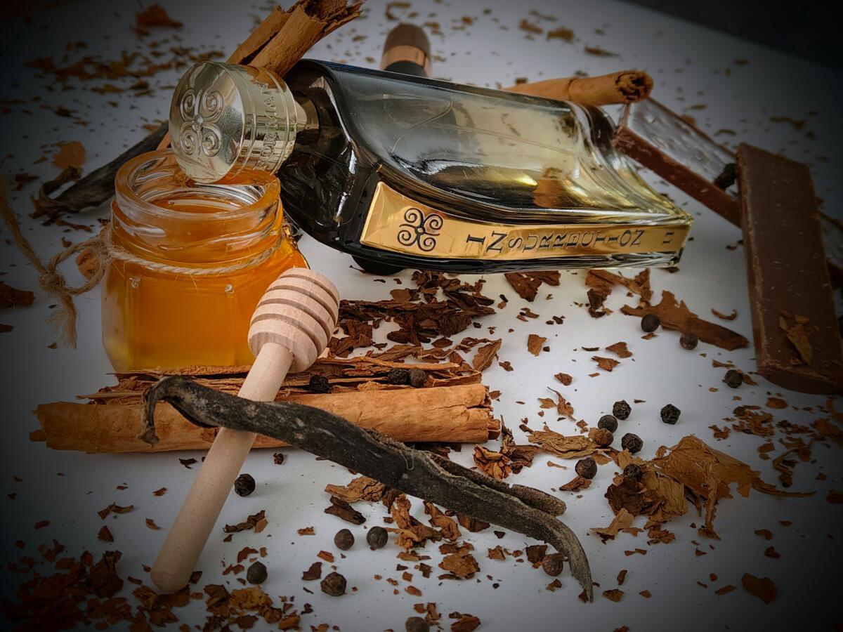 Svrchní tóny: med, tabák, pačuli, vanilka, labdanum, styrax a kakao.