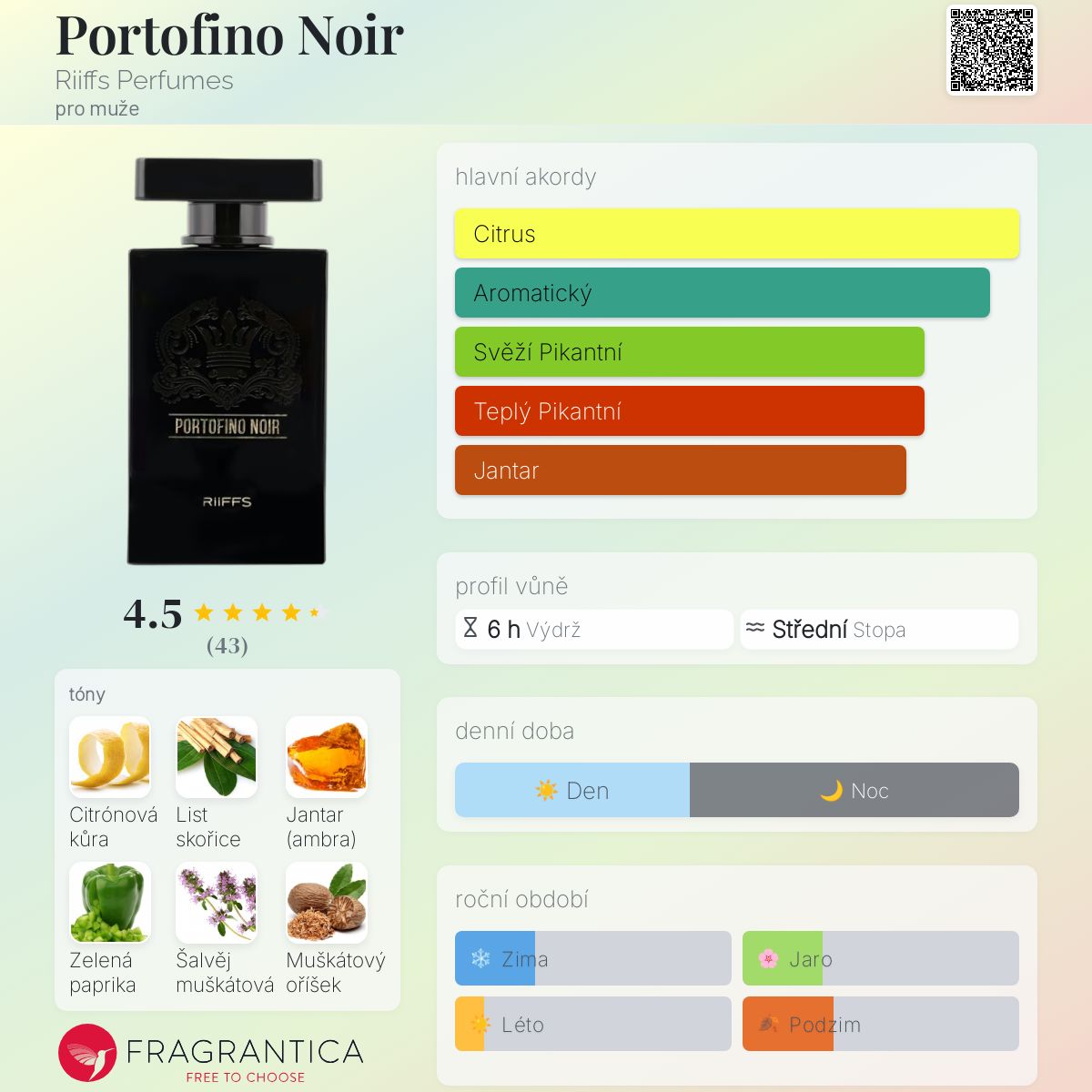 Portofino Noir podle Riiffs Perfumes je Woody Spicy vůně pro muže. Portofino Noir byl/a uveden/a v roce 2021. Vrchní tóny jsou Citrónová kůra, Zelená paprika a Šalvěj muškátová; střední tóny jsouList skořice, Muškátový oříšek a Neroli ; základní tóny jsou Jantar (ambra), Kůže a Suché dřevo.