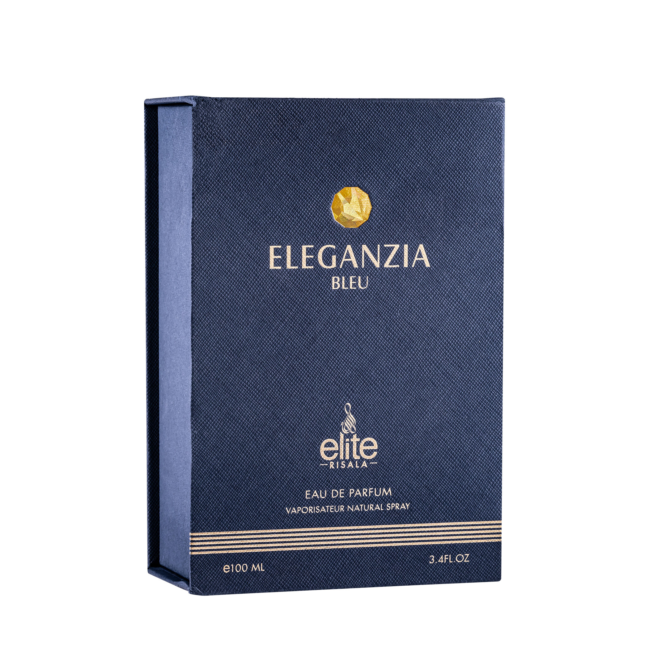 Eleganzia Bleu podle Risala Elite je vůně pro muže. Toto je nová vůně. Eleganzia Bleu byl/a uveden/a v roce 2024. Vrchní tóny jsou Citrónová kůra, Bergamot, Máta, Zázvor a Mořská sůl; střední tóny jsouLevandule, Ananas, Vetiver, Mořská řasa, Zelené tóny a Pelargónie ; základní tóny jsou Cedr, Santalové dřevo, Jantarové dřevo, Fazole tonka a Dubový mech.