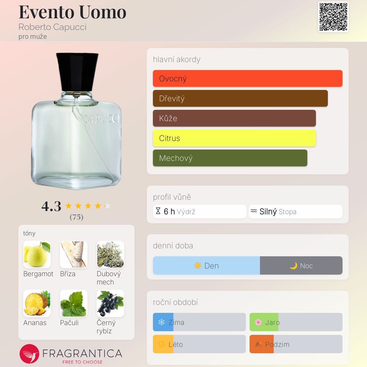 Evento Uomo podle Roberto Capucci je vůně pro muže. "Nosem" za touto vůní je Paolo Cerizza. Vrchní tóny jsou Bergamot, Ananas, Černý rybíz a Jablko; střední tóny jsouBříza, Pačuli, Jasmín a Růže ; základní tóny jsou Dubový mech, Bílé pižmo, Ambra a Vanilka.