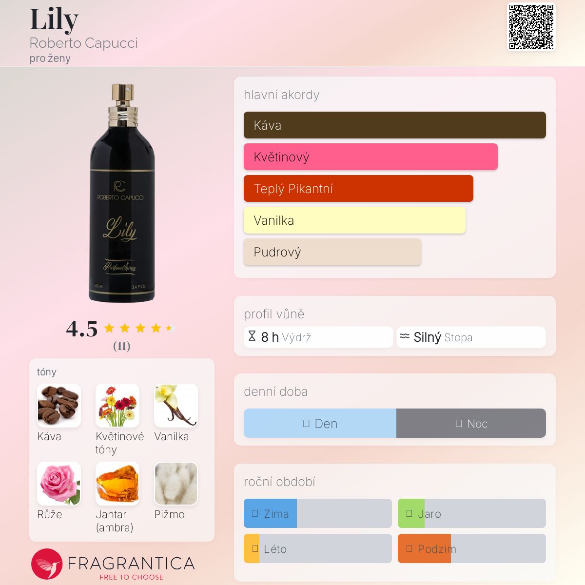 Lily podle Roberto Capucci je vůně pro ženy. Vrchní tón je Květinové tóny ; střední tóny jsouKáva a Růže ; základní tóny jsou Vanilka, Jantar (ambra) a Bílé pižmo.