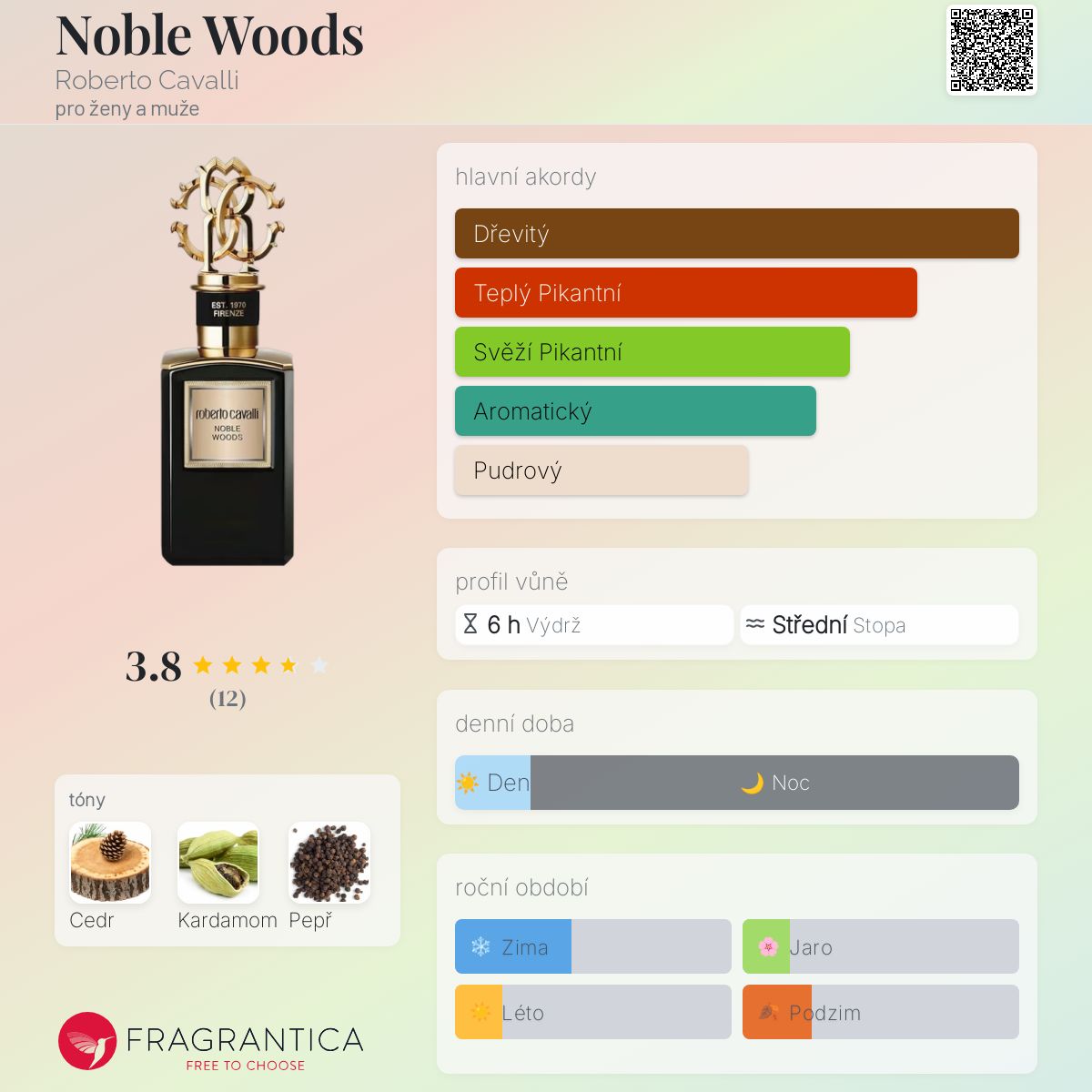 Noble Woods podle Roberto Cavalli je vůně pro ženy a muže. Noble Woods byl/a uveden/a v roce 2022. "Nosem" za touto vůní je Christophe Raynaud.