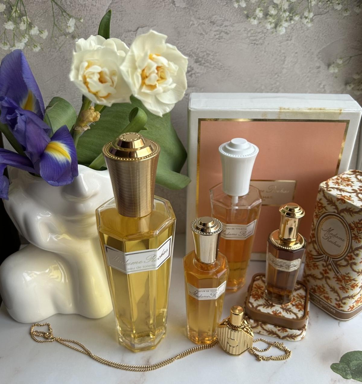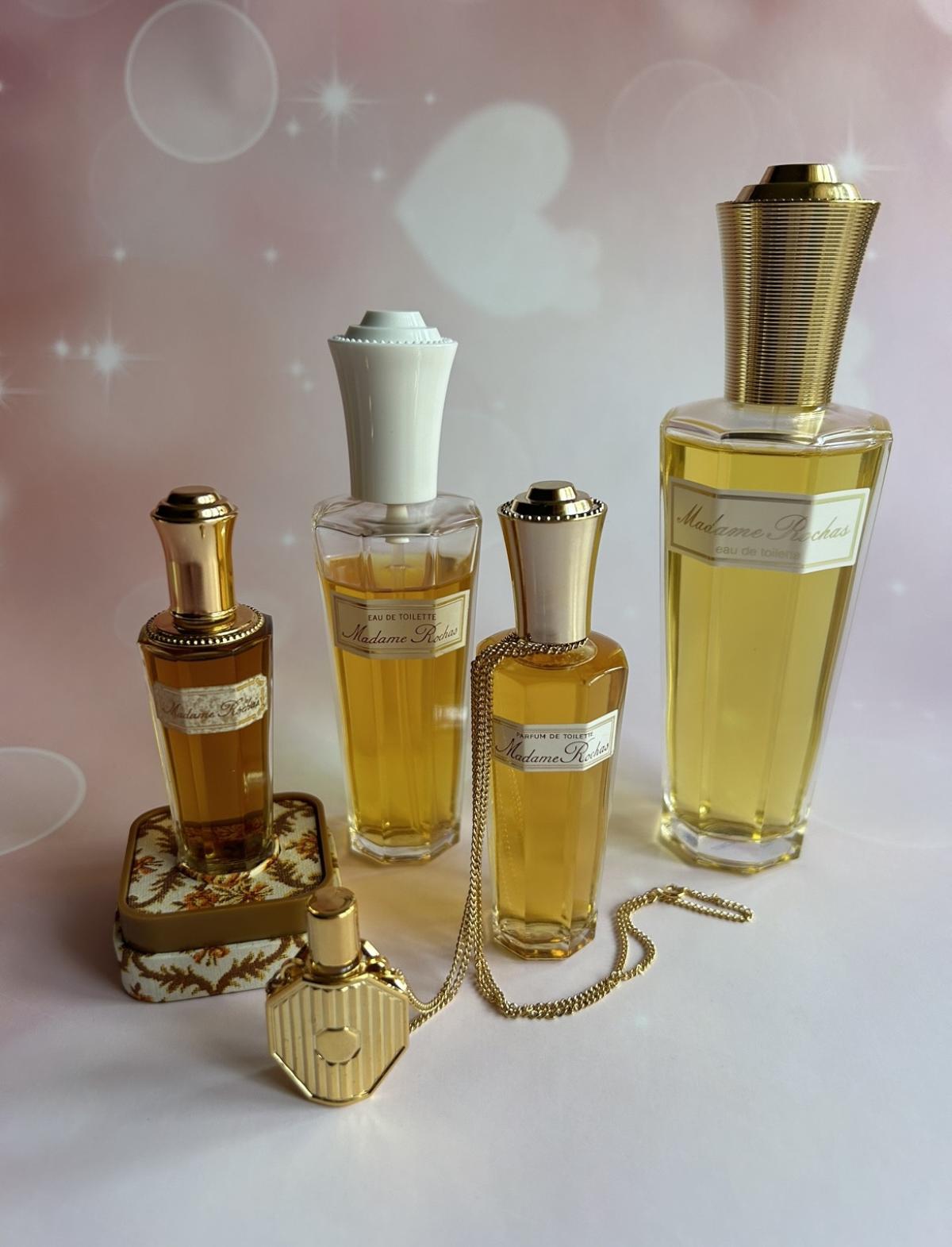 Madame Rochas podle Rochas je Floral Aldehyde vůně pro ženy. Madame Rochas byl/a uveden/a v roce 1960. "Nosem" za touto vůní je Guy Robert. Vrchní tóny jsou Aldehydy, Hyacint, Zelené tóny, Neroli, Zimolez, Bergamot, Pomerančový květ a Citrón; střední tóny jsouKosatec, Narcis, Kořen orris, Ylang-Ylang, Bulharská růže, Fialka, Konvalinka, Jasmín a Tuberóza ; základní tóny jsou Dubový mech, Santalové dřevo, Vetiver, Pižmo, Cedr, Jantar (ambra) a Fazole tonka.