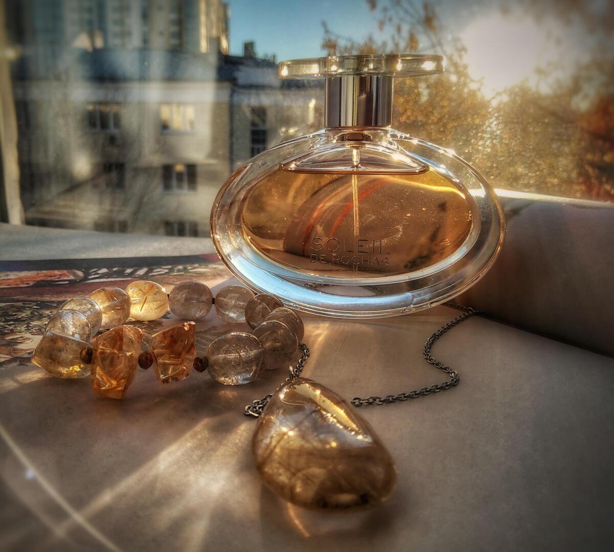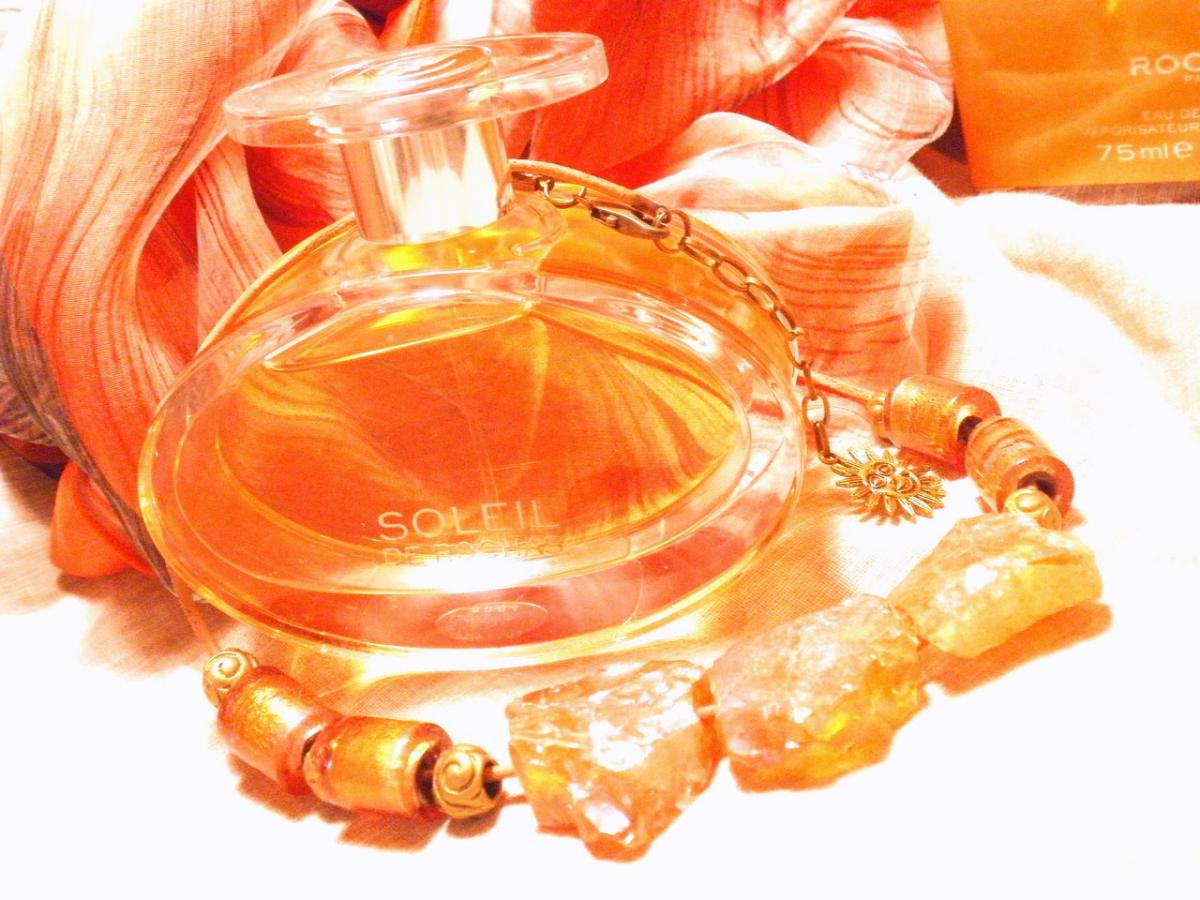 Rochas Soleil podle Rochas je Chypre Fruity vůně pro ženy. Rochas Soleil byl/a uveden/a v roce 2008. Vrchní tóny jsou Hruška, Mandarinka a Růžový pepř; střední tóny jsouPomerančový květ, Tuberóza a Růže ; základní tóny jsou Bílé dřevo, Pačuli a Vanilka.