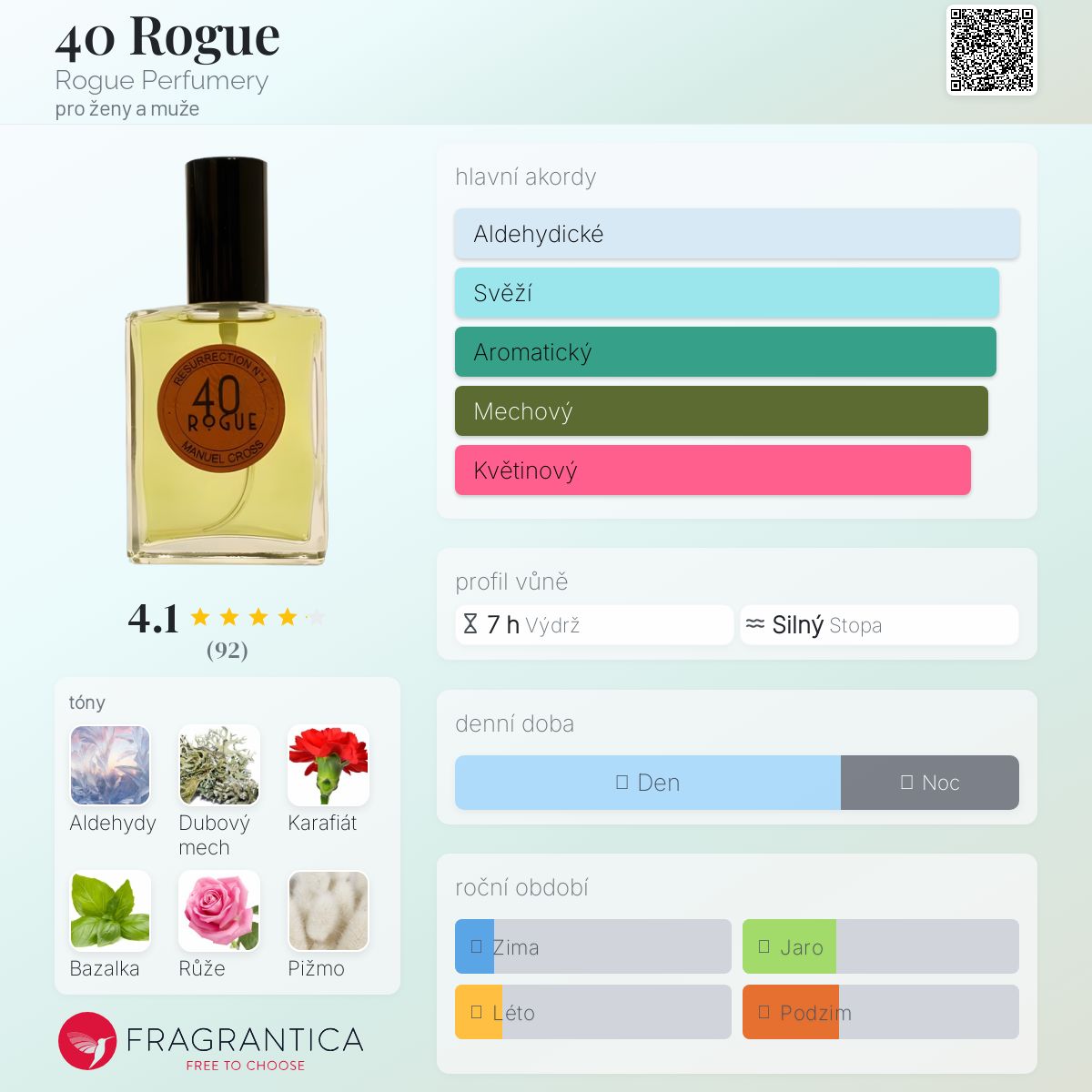 40 Rogue podle Rogue Perfumery je Floral Aldehyde vůně pro ženy a muže. 40 Rogue byl/a uveden/a v roce 2019. "Nosem" za touto vůní je Manuel Cross.