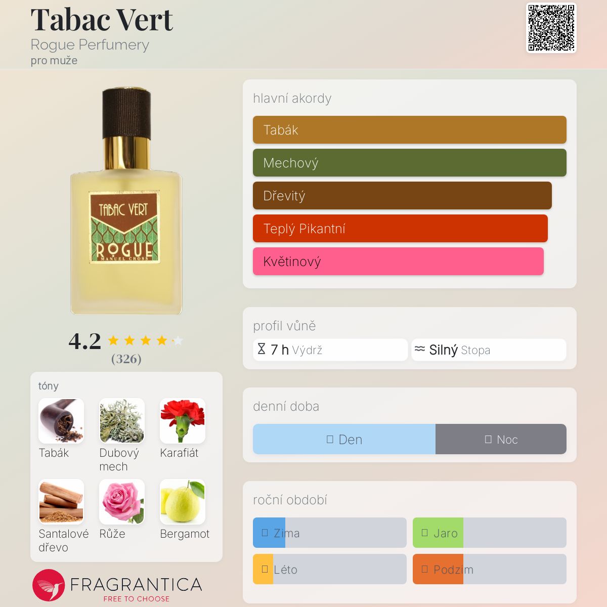 Tabac Vert podle Rogue Perfumery je Woody Chypre vůně pro muže. Tabac Vert byl/a uveden/a v roce 2017. "Nosem" za touto vůní je Manuel Cross.