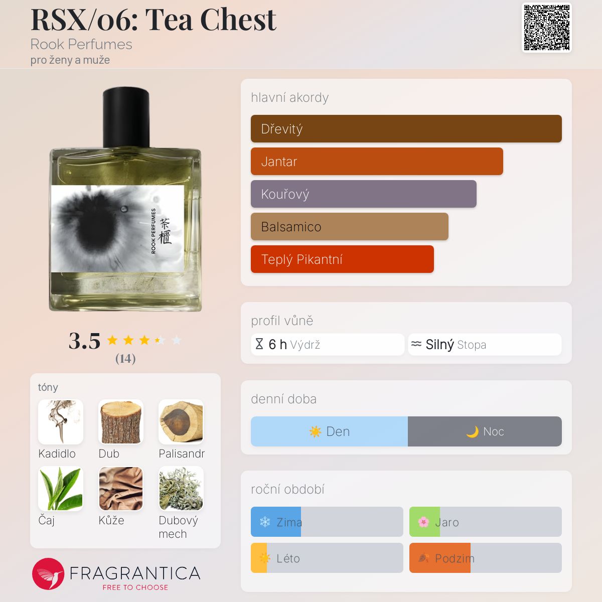 RSX/06: Tea Chest podle Rook Perfumes je vůně pro ženy a muže. RSX/06: Tea Chest byl/a uveden/a v roce 2023. "Nosem" za touto vůní je Nadeem Crowe.