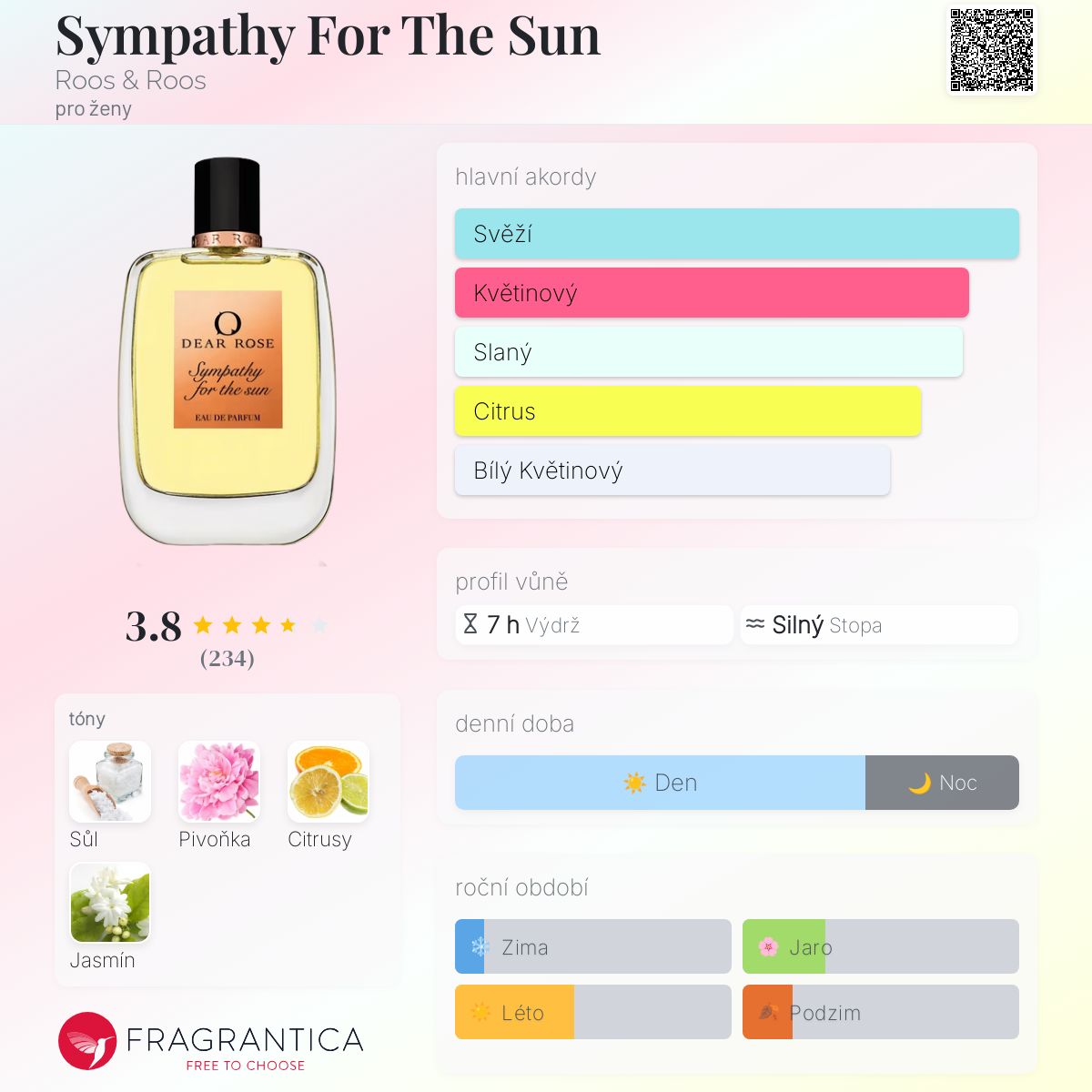 Sympathy For The Sun podle Roos & Roos je Floral vůně pro ženy. Sympathy For The Sun byl/a uveden/a v roce 2014. "Nosem" za touto vůní je Fabrice Pellegrin.