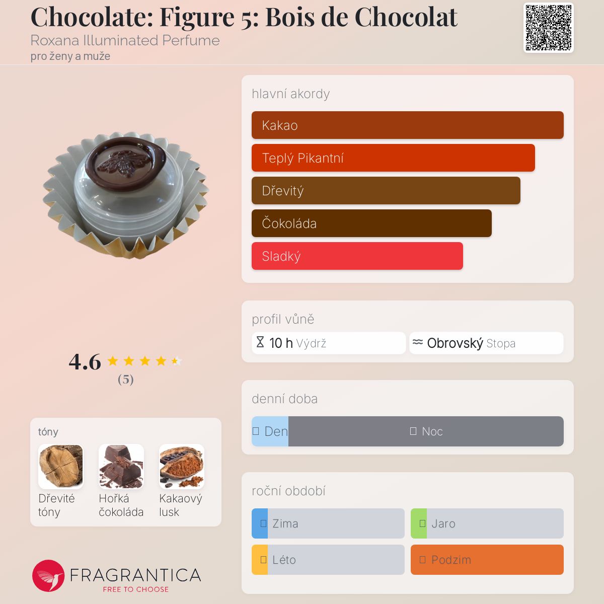 Chocolate: Figure 5: Bois de Chocolat podle Roxana Illuminated Perfume je Orientální Spicy vůně pro ženy a muže. "Nosem" za touto vůní je Roxana Villa.
