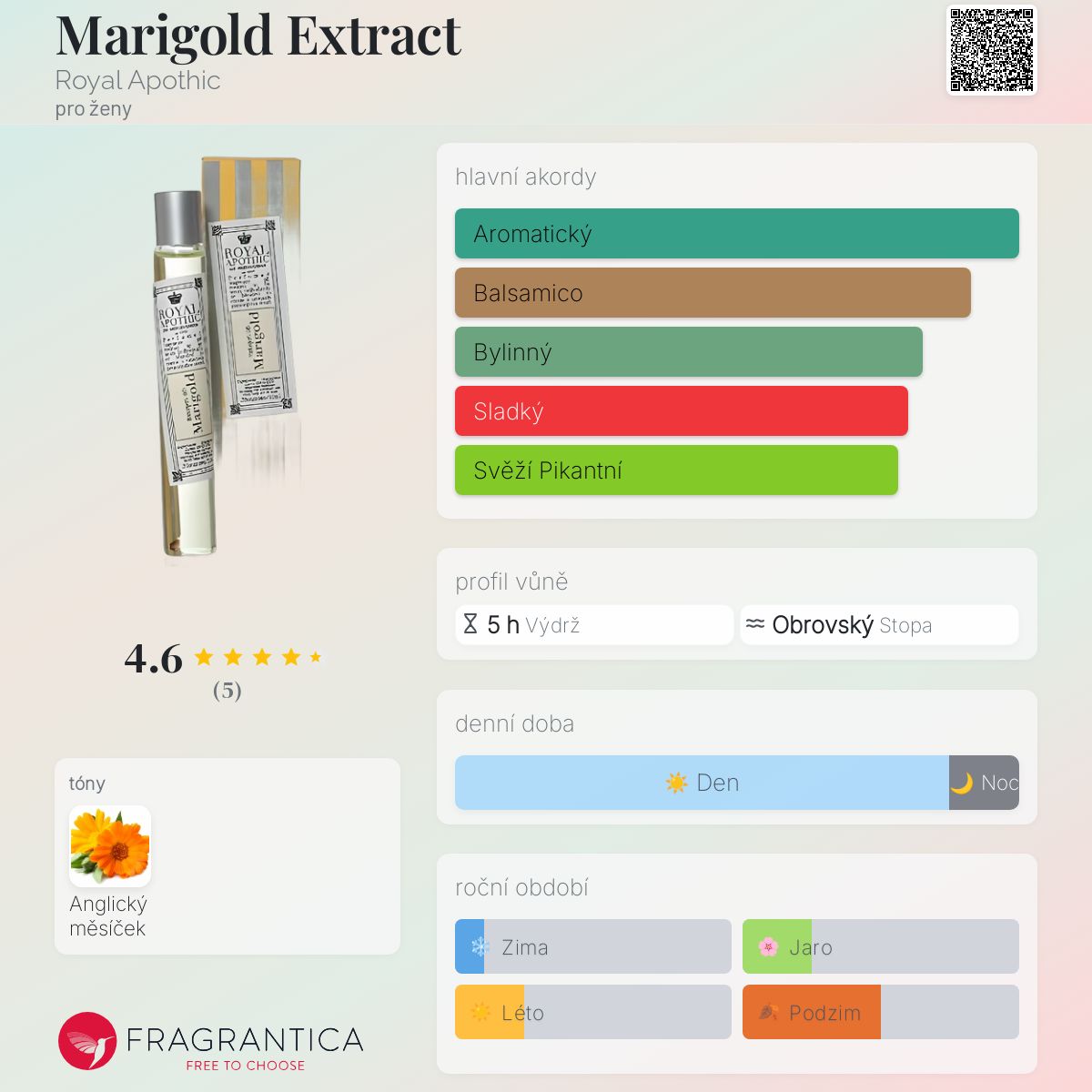 Marigold Extract podle Royal Apothic je Floral vůně pro ženy. Marigold Extract byl/a uveden/a v roce 2010.