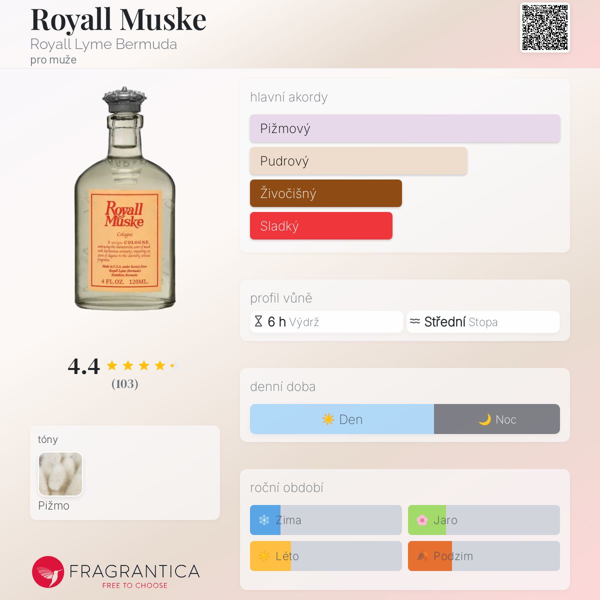 Royall Muske podle Royall Lyme Bermuda je Floral Woody Musk vůně pro muže. Royall Muske byl/a uveden/a v roce 1978.