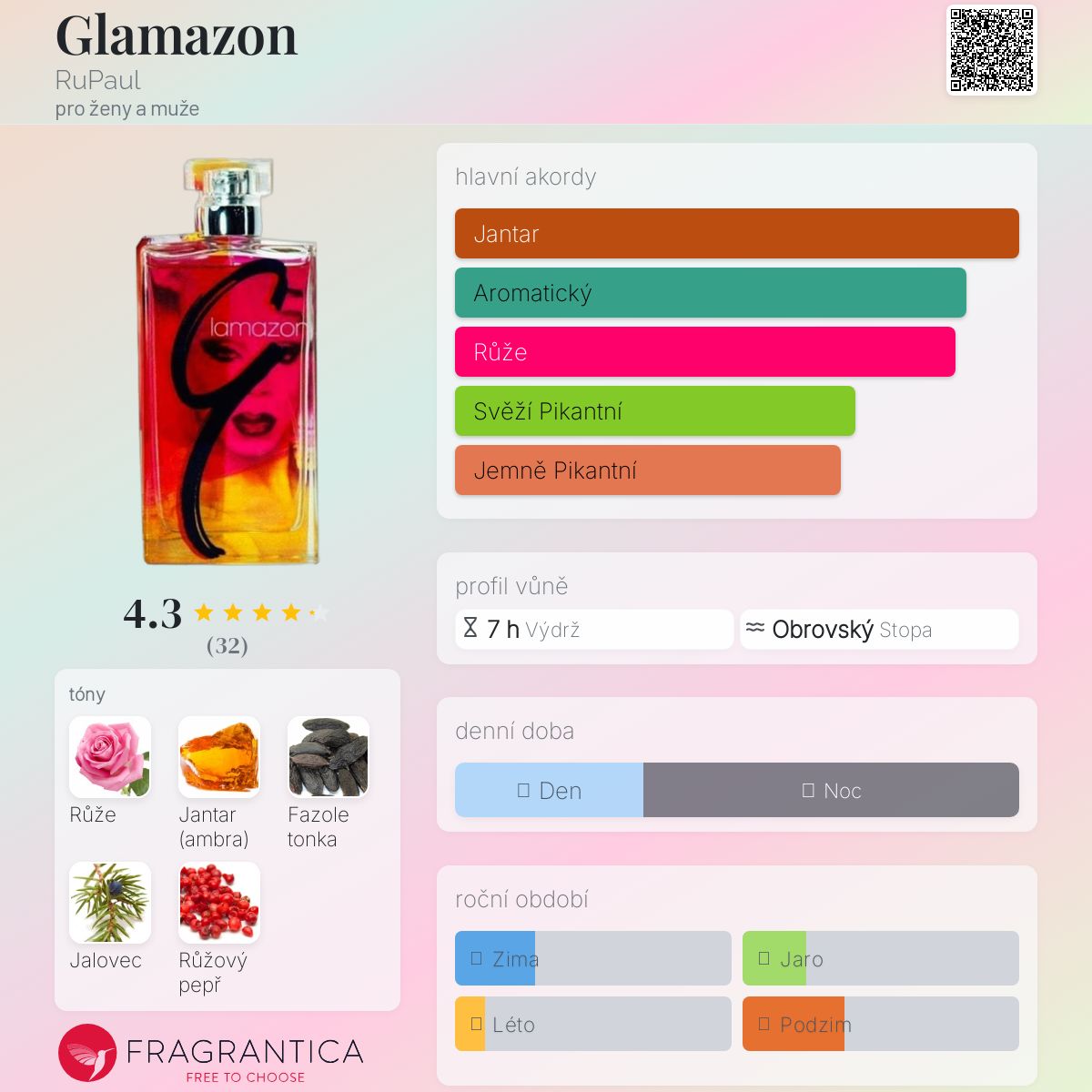 Glamazon podle RuPaul je Orientální Floral vůně pro ženy a muže. Glamazon byl/a uveden/a v roce 2013. Vrchní tón je Růžový pepř ; střední tón jeMarocká růže ; základní tóny jsou Jantar (ambra), Fazole tonka a Červený cedr.