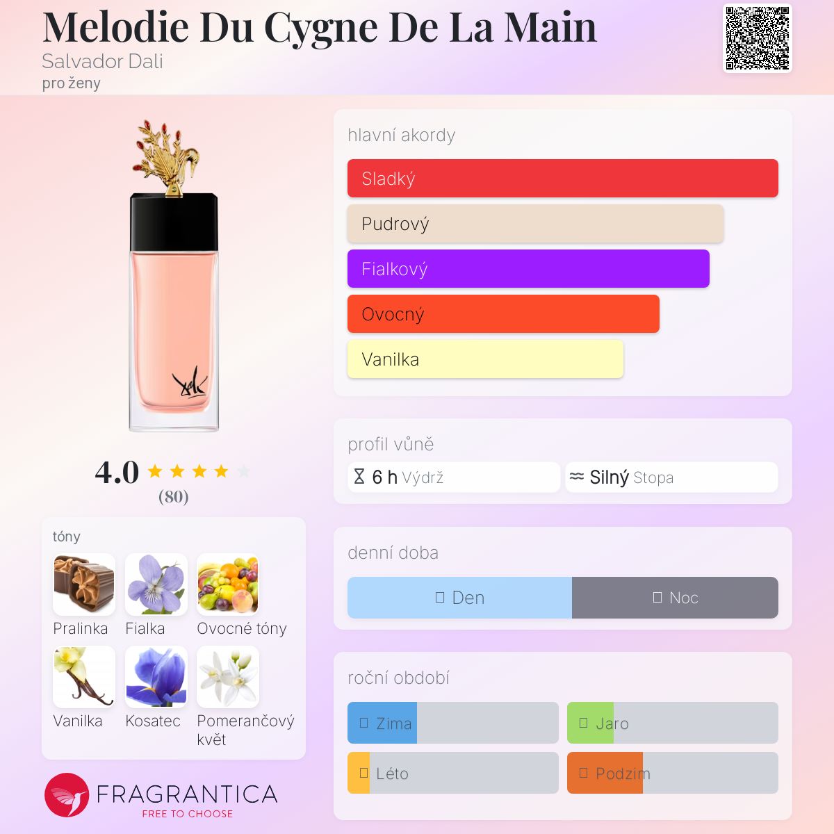 Melodie Du Cygne De La Main podle Salvador Dali je Floral Woody Musk vůně pro ženy. Melodie Du Cygne De La Main byl/a uveden/a v roce 2015. "Nosem" za touto vůní je Alberto Morillas.