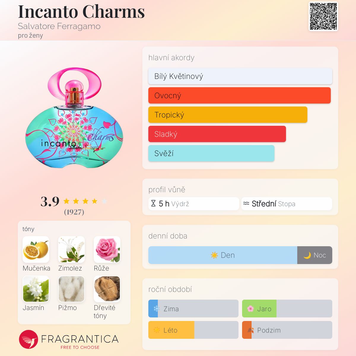 Incanto Charms podle Salvatore Ferragamo je Floral Fruity vůně pro ženy. Incanto Charms byl/a uveden/a v roce 2006. "Nosem" za touto vůní je Beatrice Piquet. Vrchní tóny jsou Mučenka a Zimolez; střední tóny jsouRůže a Jasmín ; základní tóny jsou Pižmo a Dřevité tóny.