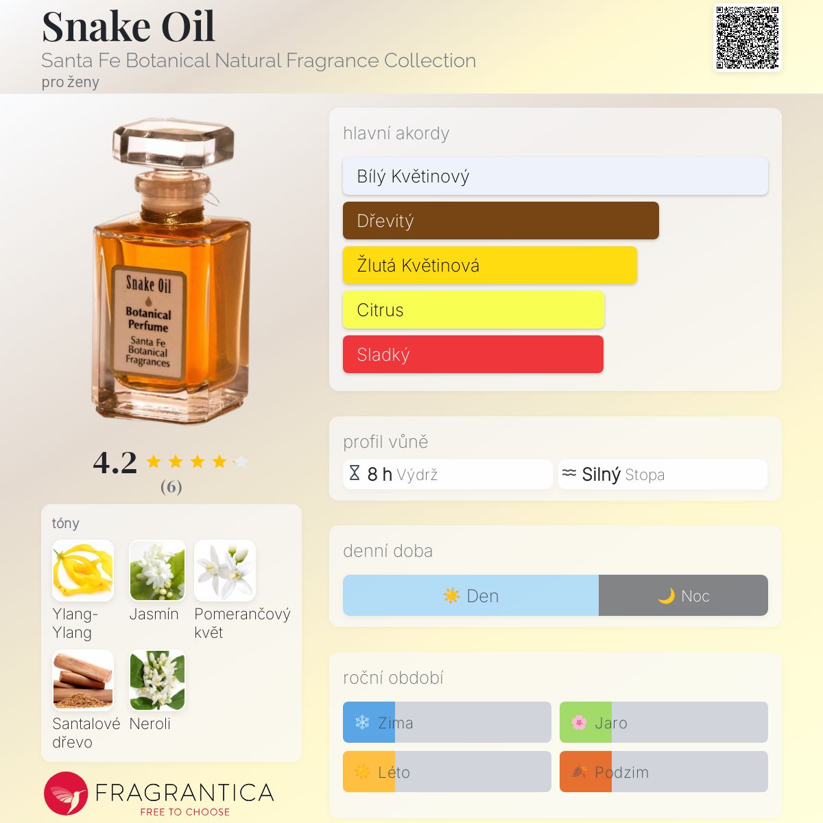 Snake Oil podle Santa Fe Botanical Natural Fragrance Collection je Floral vůně pro ženy. Snake Oil byl/a uveden/a v roce 2013. "Nosem" za touto vůní je Christine Malcolm.
