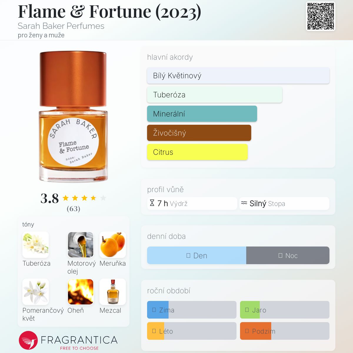 Flame & Fortune (2023) podle Sarah Baker Perfumes je Orientální Floral vůně pro ženy a muže. Flame & Fortune (2023) byl/a uveden/a v roce 2023. "Nosem" za touto vůní je Sarah Baker.
