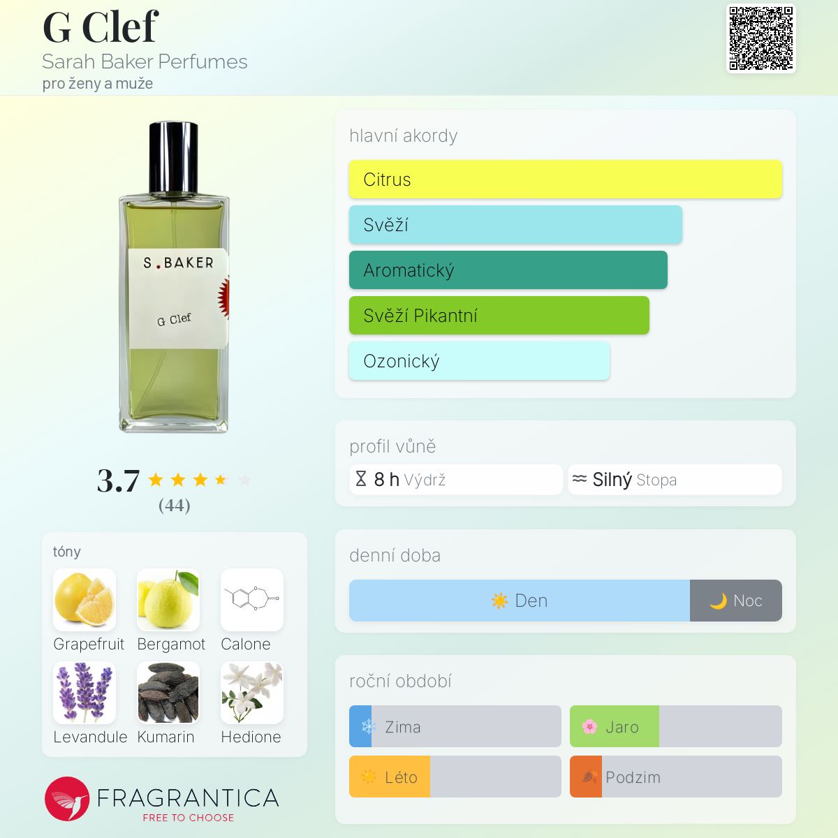 G Clef podle Sarah Baker Perfumes je Citrus Aromatic vůně pro ženy a muže. G Clef byl/a uveden/a v roce 2020. "Nosem" za touto vůní je Sarah Baker.