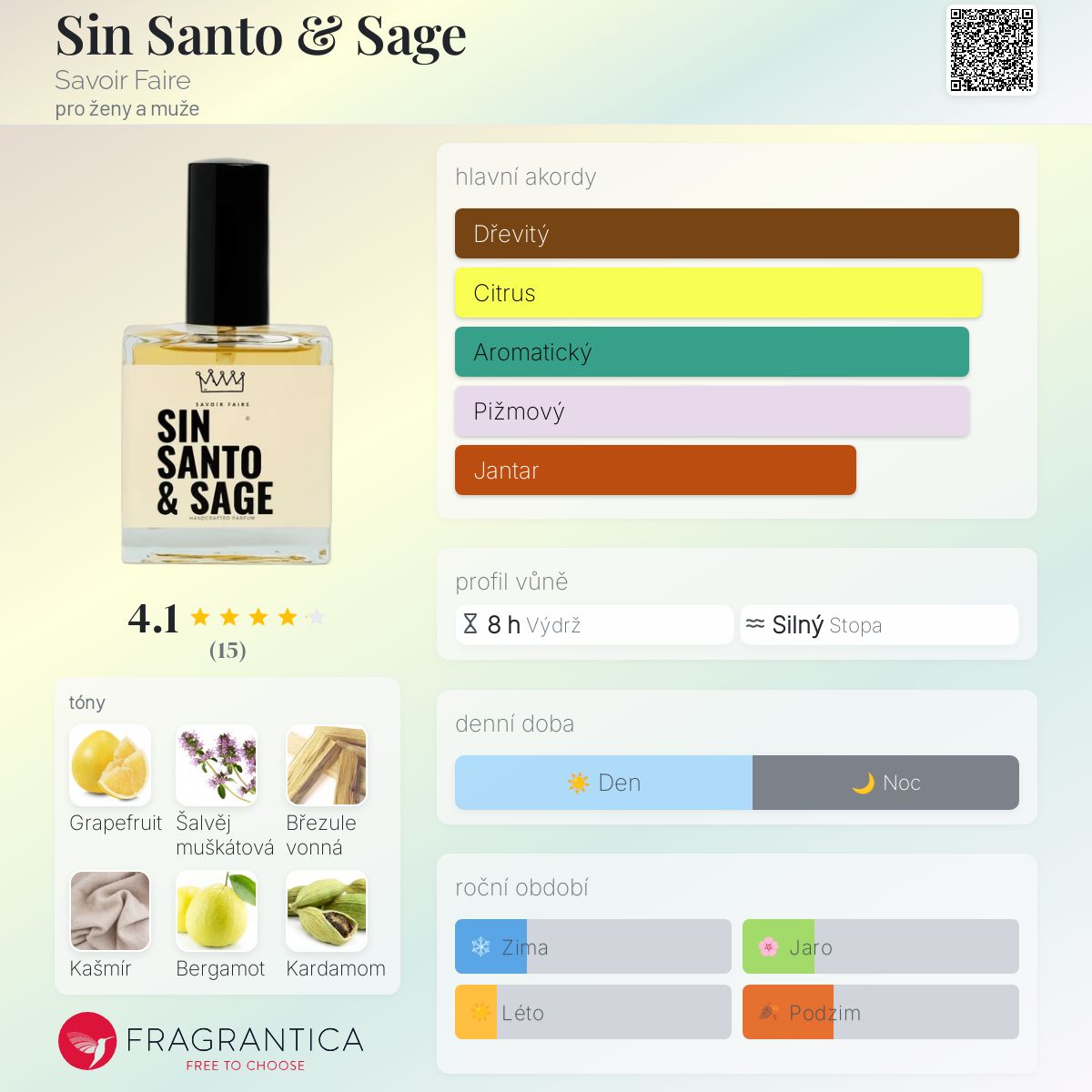 Sin Santo & Sage podle Savoir Faire je Woody Aromatic vůně pro ženy a muže. Sin Santo & Sage byl/a uveden/a v roce 2021. "Nosem" za touto vůní je Chris Classic.