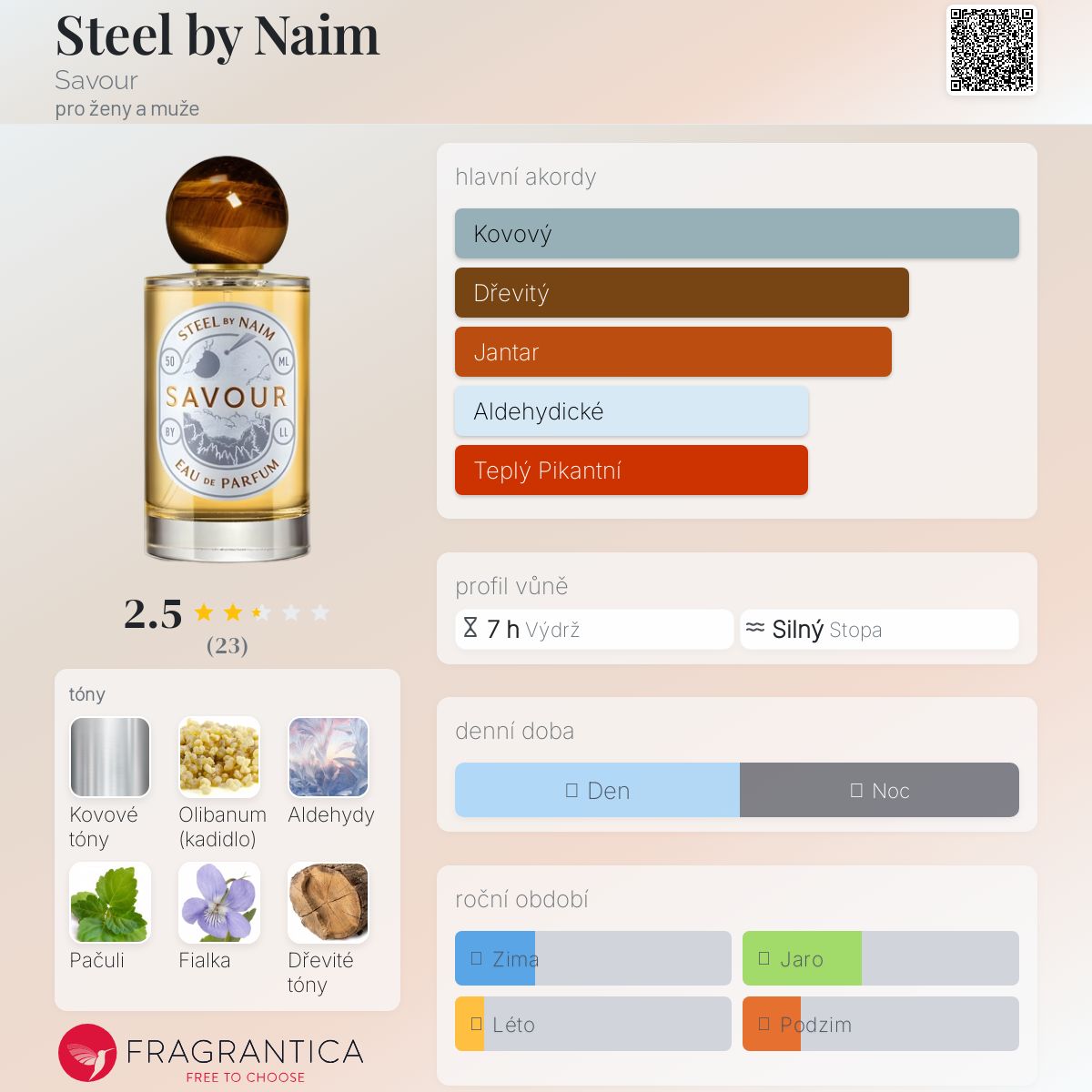 Steel by Naim podle Savour je Woody vůně pro ženy a muže. Steel by Naim byl/a uveden/a v roce 2021. "Nosem" za touto vůní je Linda Landenberg.