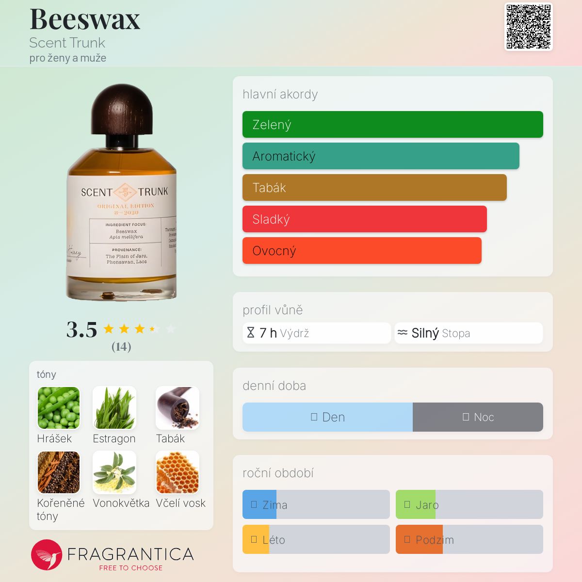 Beeswax podle Scent Trunk je Aromatic vůně pro ženy a muže. Beeswax byl/a uveden/a v roce 2020. "Nosem" za touto vůní je Mason Hainey.