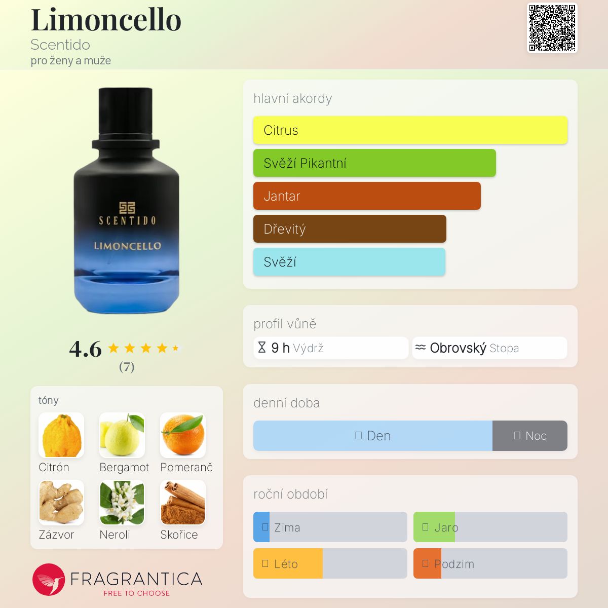 Limoncello podle Scentido je vůně pro ženy a muže. Toto je nová vůně. Limoncello byl/a uveden/a v roce 2024. Vrchní tóny jsou Citrón, Kalábrijský bergamot a Sicilský pomeranč; střední tóny jsouNigerijský zázvor, Tuniské neroli a Cejlonská skořice ; základní tóny jsou Čínský černý čaj, Ambroxan, Guajakové dřevo a Kadidlo.