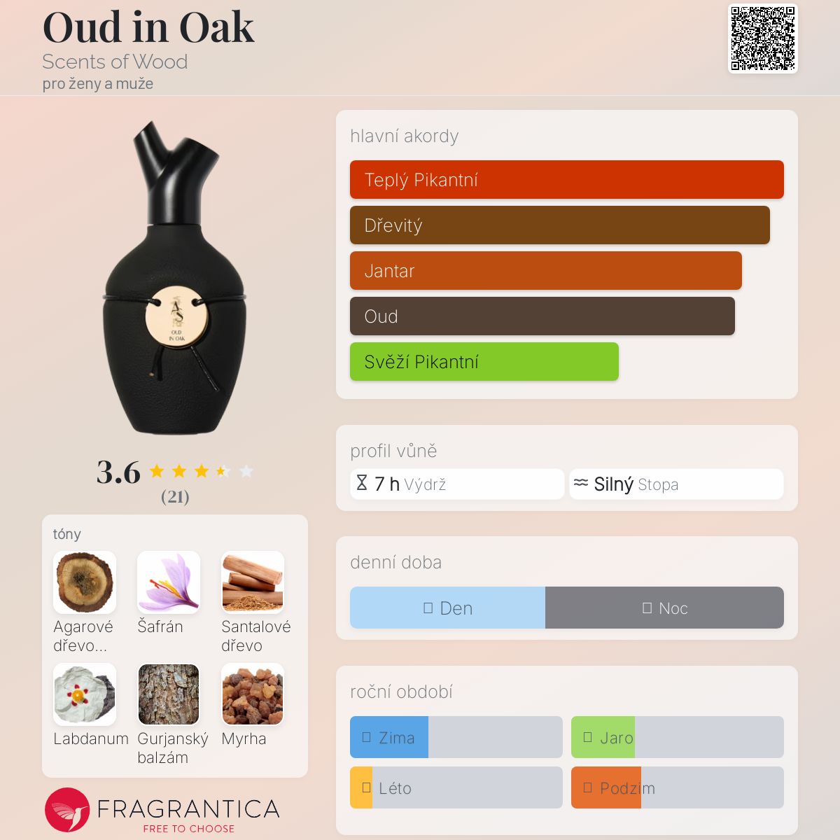 Oud in Oak podle Scents of Wood je Woody vůně pro ženy a muže. Oud in Oak byl/a uveden/a v roce 2020. "Nosem" za touto vůní je Celine Barel.