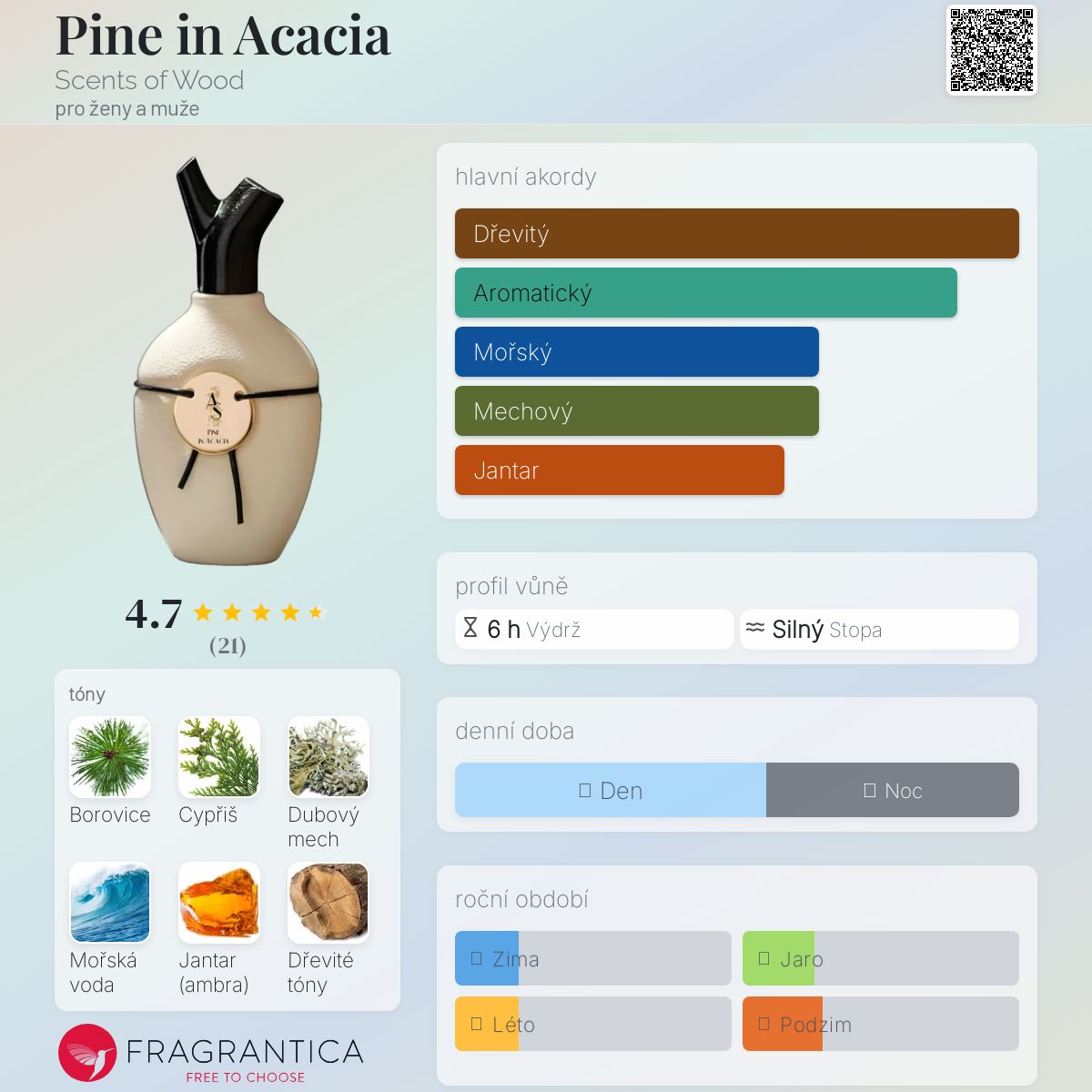 Pine in Acacia podle Scents of Wood je Woody Aromatic vůně pro ženy a muže. Pine in Acacia byl/a uveden/a v roce 2020. "Nosem" za touto vůní je Pascal Gaurin.