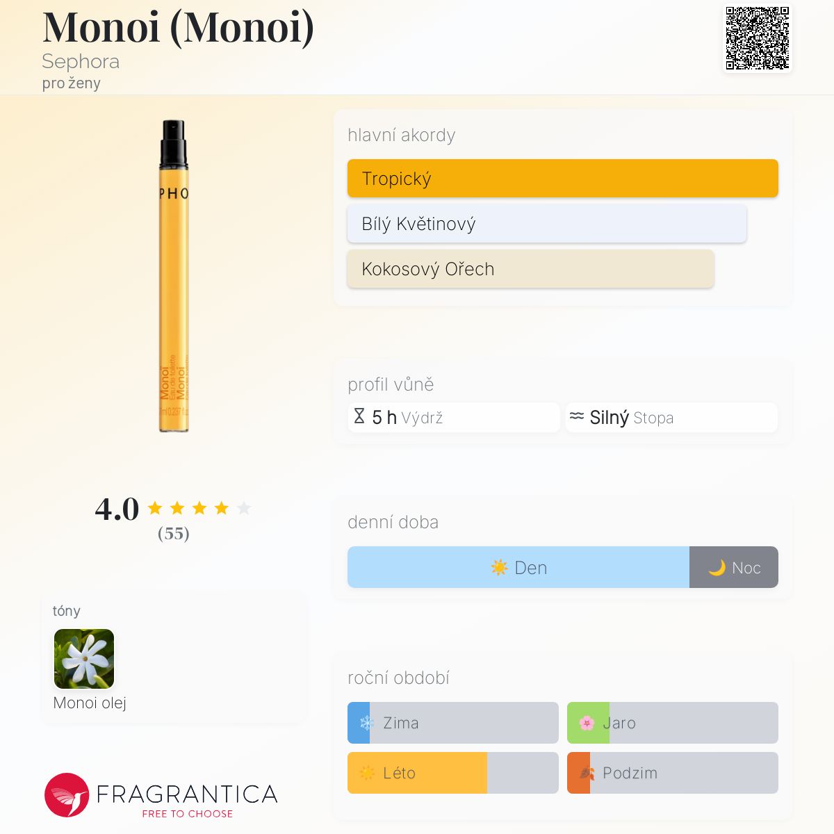 Monoi (Monoi) podle Sephora je Floral vůně pro ženy. Monoi (Monoi) byl/a uveden/a v roce 2012.
