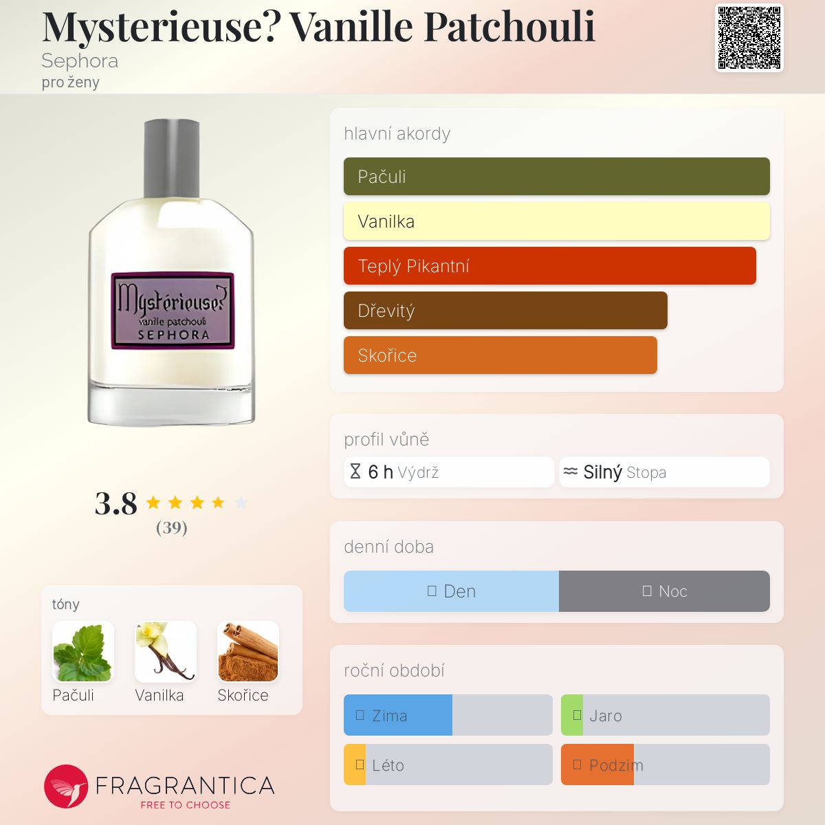 Mysterieuse? Vanille Patchouli podle Sephora je Orientální Vanilla vůně pro ženy. Mysterieuse? Vanille Patchouli byl/a uveden/a v roce 2007.