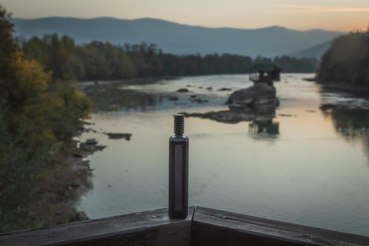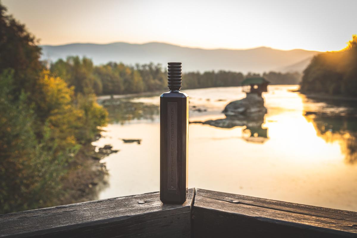 Láhev ve tvaru zvonu zdůrazňuje posvátnou orientaci, myšlenky na věčnost.