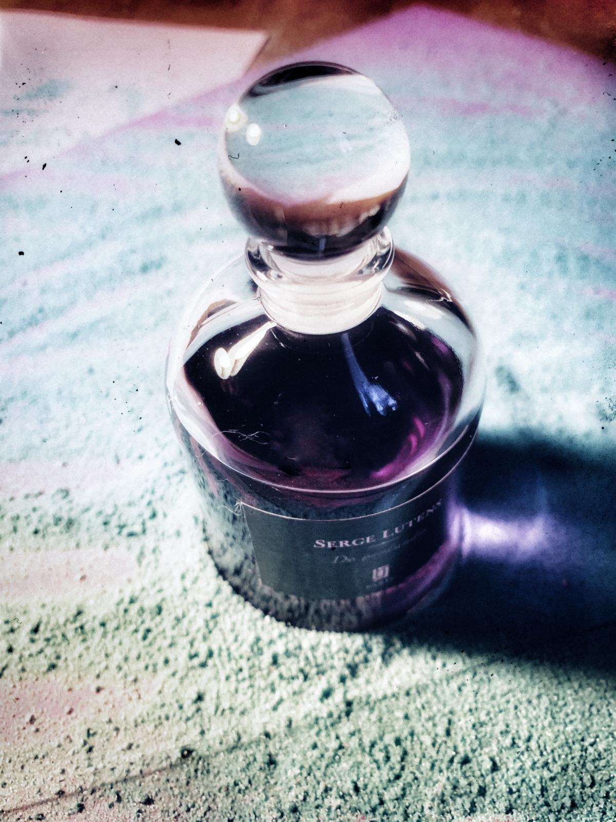 Ach, konečně to mám! Celou láhev tohoto smutného fialového soumraku, této gotické fialové pohádky! V létě, z lahvičky, byl prostě nádherný. Ale jeho časem je podzim a chladnější počasí. Teď je opravdu ohromující. Nepodobá se žádné z vůní Monsieur Serge. A chryzantéma - její trpkost, její zvláštní podzimní, smutná vůně - je cítit od prvních okamžiků po nanesení až do chvíle, kdy vůně na kůži vyprchá, a vydrží dlouho..... Jemné kadidlo, spíše duch kadidla. Vlhké fialky - květy a listy. Kosatce: i když nejsou v pyramidě, ale pro mě v této vůni jsou. A - pro mě překvapivě - v létě jsem ji necítila: výrazný tón kandované fialky. A také - spousta kouzel, zázraků, parfumérského talentu, neidentifikovatelných tónů, které vytvářejí krásu této vůně, vzdušnou a zároveň hutnou, jako ažurová kovaná mříž.....
